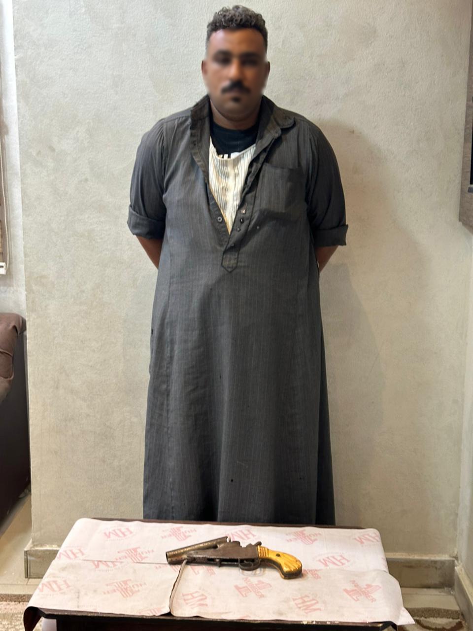 أمكن ضبط المتهم (عامل – مقيم بدائرة المركز) فى حينه، وبحوزته السلاح الناري المستخدم فى الواقعة.