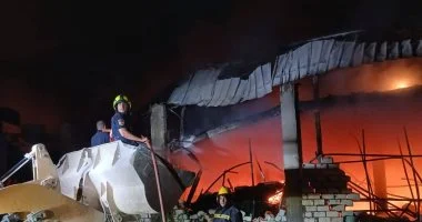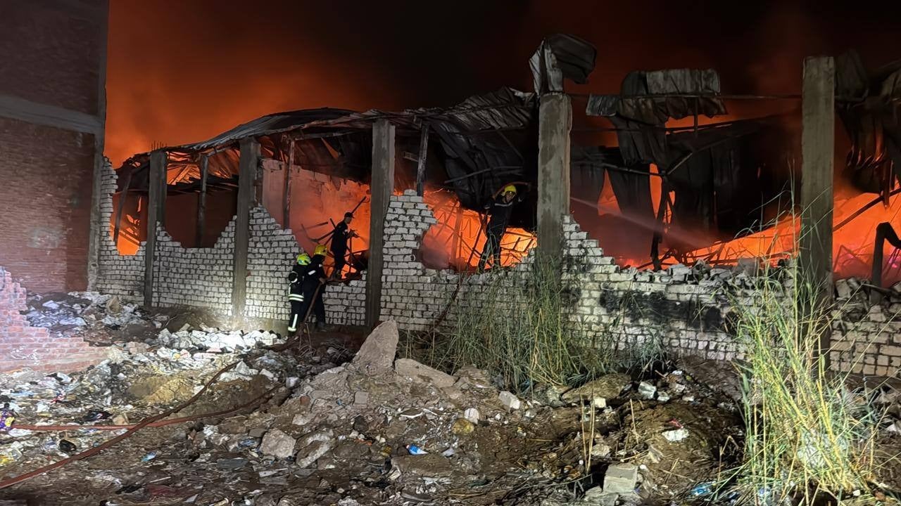 حريق هائل في مصنع أحذية بالخانكة والدفع بـ15 سيارة إطفاء لمحاصرة النيران
