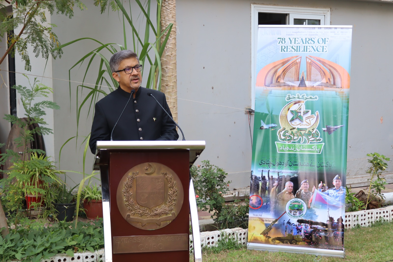 احتفلت سفارة باكستان بالقاهرة بعيد الاستقلال التاسع والسبعين لباكستان بحماسة تقليدية، ورفع السفير عامر شوكت العلم الوطني في مبنى السفارة، تلا ذلك عزف النشيد الوطني، وتلاوة آيات من القرآن الكريم، ورسائل من الرئيس، ورئيس الوزراء، ونائب رئيس الوزراء وزير الخارجية بهذه المناسبة.