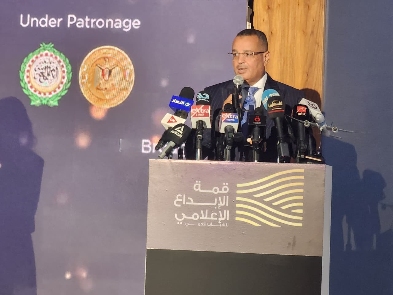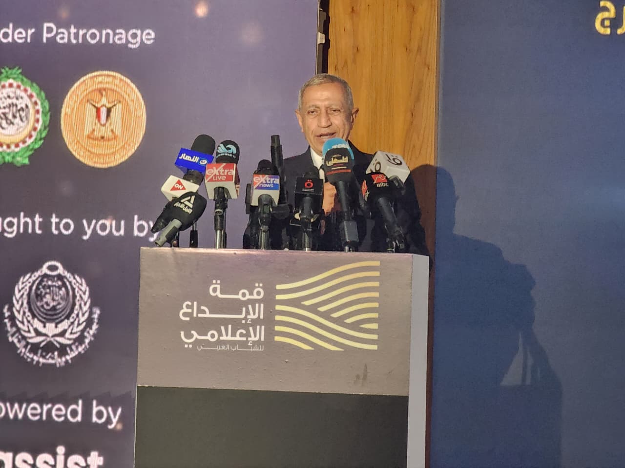 ولفت إلى متابعة جامعة الدول العربية باهتمام كبير فعاليات قمة الإبداع الإعلامي للشباب العربي، في نسختها الأولى والثانية، وموضوعاتها الثرية في دعم النشاط والإبداع الإعلامي والرقمي، وخصوصًا ملفات الذكاء الاصطناعي وتأثير التقنيات الناشئة على قضايا الإعلام.