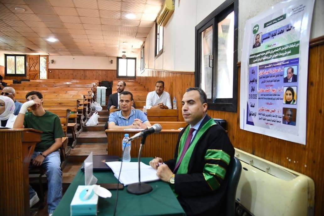 وشهدت المناقشة حضور عدد من الشخصيات العامة، في مقدمتهم اللواء هشام الحصري رئيس لجنة الزراعة والري بمجلس النواب، والكاتب الصحفي أيمن عبدالمجيد عضو مجلس نقابة الصحفيين، رئيس تحرير جريدة روز اليوسف، إلى جانب نخبة من الزملاء الصحفيين والباحثين وأفراد عائلة الباحث.