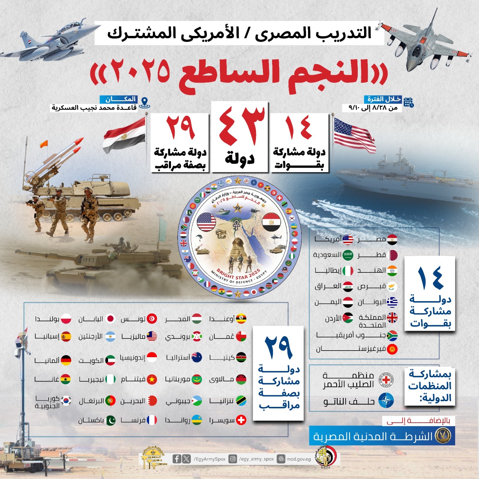 «النجم الساطع 2025».. 43 دولة تشارك في أكبر تدريب عسكري على أرض مصر