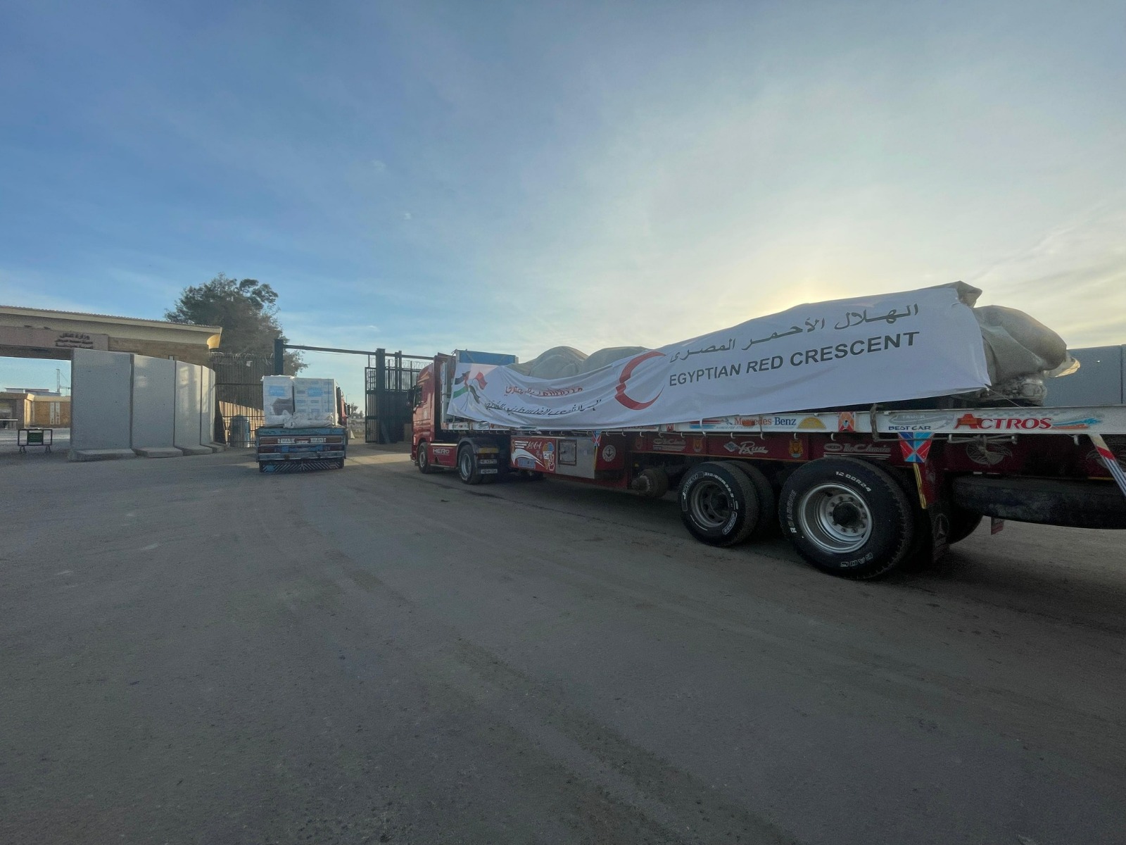 2700 طن مساعدات.. الهلال الأحمر المصري يدفع بالقافلة الـ27 من «زاد العزة» إلى غزة