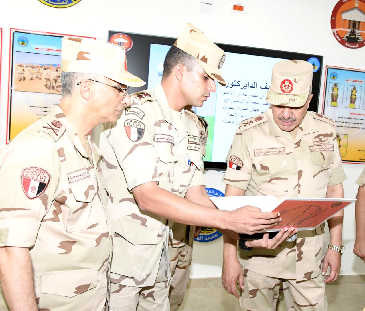 تفقد الفريق أحمد خليفة رئيس أركان حرب القوات المسلحة المنظومة التعليمية بالمعاهد العسكرية التخصصية لضباط القوات المسلحة بالكيان العسكرى بحضور عدد من قادة القوات المسلحة، وذلك فى إطار حرص القيادة العامة للقوات المسلحة على متابعة نظم وبرامج الإعداد والتأهيل العلمى والعسكرى للضباط بالمنشآت التعليمية العسكرية.