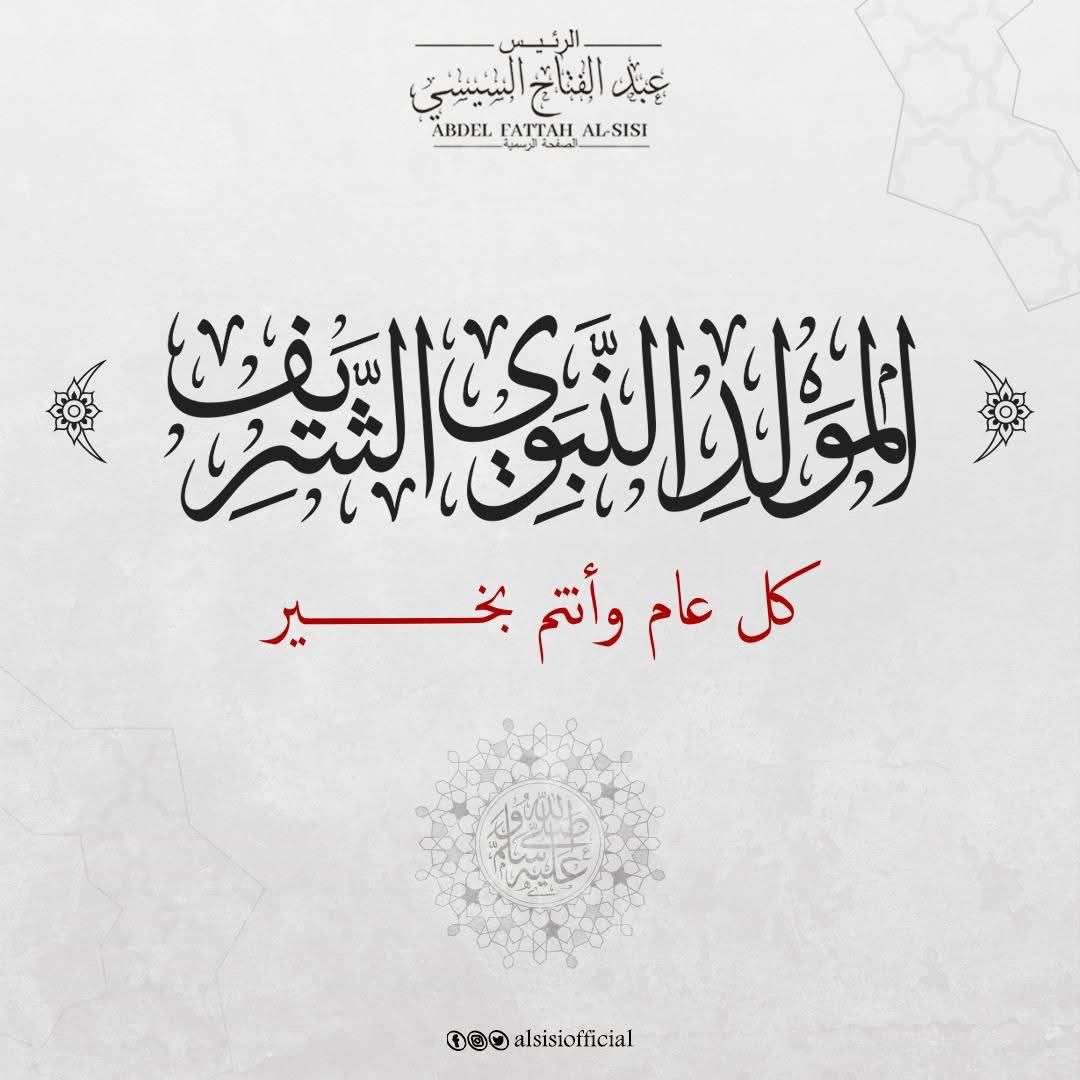 تقدم الرئيس عبدالفتاح السيسي، بالتهنئة إلى الشعب المصري الكريم والأمتين العربية والإسلامية، بمناسبة ذكرى المولد النبوي الشريف.