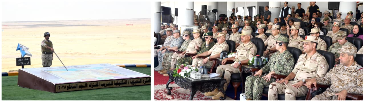 شهد الفريق أول عبد المجيد صقر القائد العام للقوات المسلحة وزير الدفاع والإنتاج الحربى المرحلة الرئيسية للتدريب المصري / الأمريكي المشترك ( النجم الساطع - 2025 ) ، وذلك بحضور الفريق أحمد خليفة رئيس أركان حرب القوات المسلحة والفريق أول براد كوبر قائد القيادة المركزية الأمريكية والفريق أول ديميتريوس خوبيس رئيس هيئة الأركان العامة للقوات المسلحة اليونانية وقادة الأفرع الرئيسية وعدد من قادة القوات المسلحة المصرية والدول المشاركة بالتدريب والملحقين العسكريين وعدد من دارسي الكليات والمعاهد العسكرية والإعلاميين .
