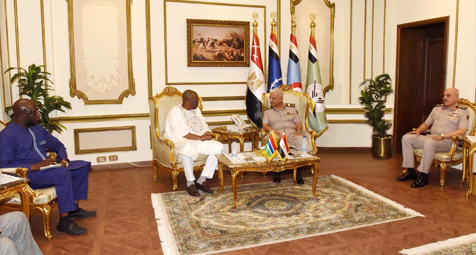 حضر اللقاء الفريق أحمد خليفة رئيس أركان حرب القوات المسلحة وقادة الأفرع الرئيسية وعدد من قادة القوات المسلحة لكلا البلدين وسفير جمهورية جامبيا بالقاهرة.