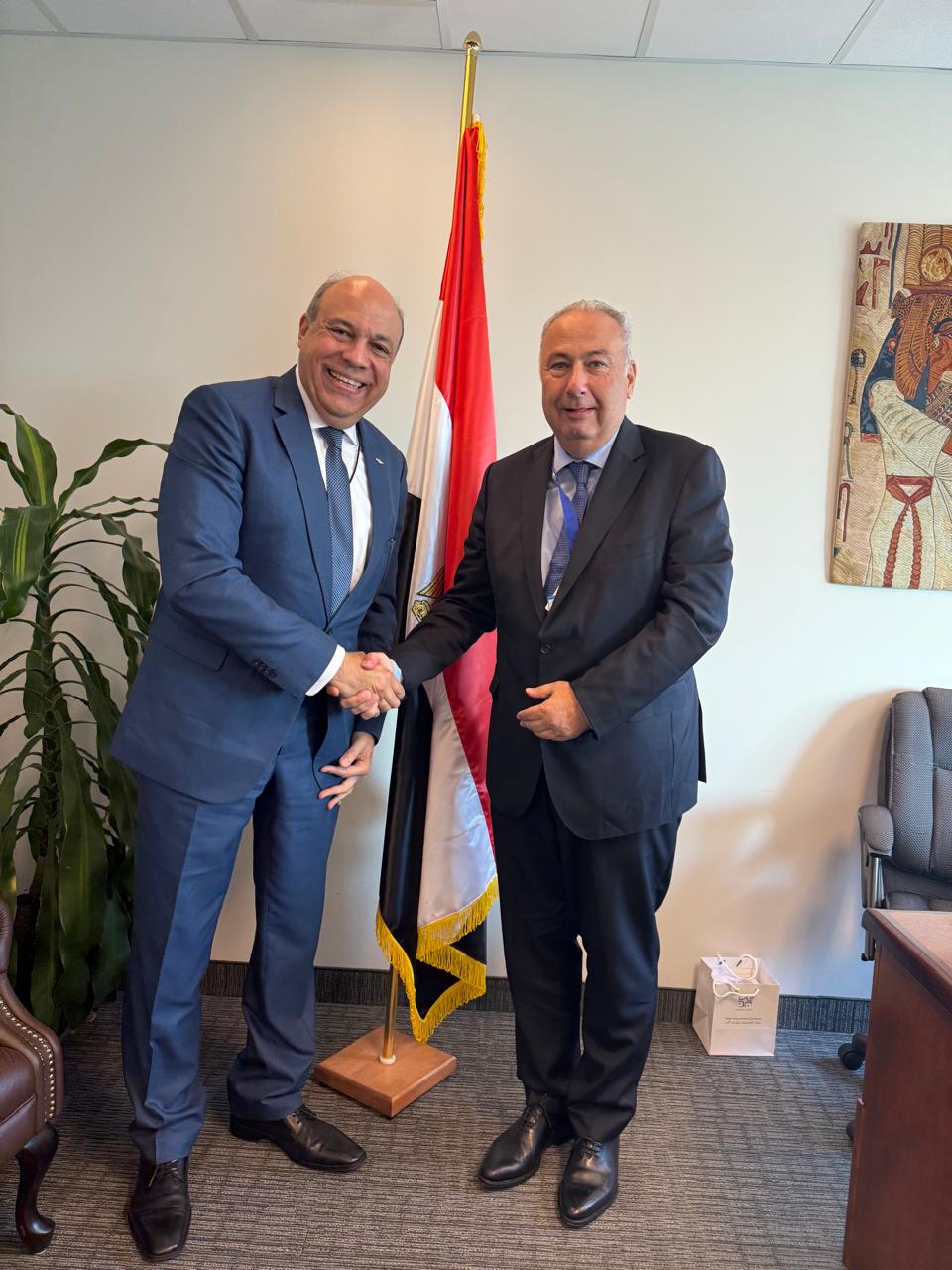 وفي لقاء آخر مع السيد تسويتومو سايتو وزير الأراضي والبنية التحتية والنقل والسياحة في اليابان، تم استعراض فرص العمل المشترك في التحول الرقمي وتطبيق الأنظمة الذكية بالنقل الجوي، إضافة إلى تبادل الخبرات التقنية، وأعرب الوزير الياباني عن تطلع بلاده إلى تنمية العلاقات مع مصر بما يخدم المصالح الاقتصادية والسياحية للجانبين.