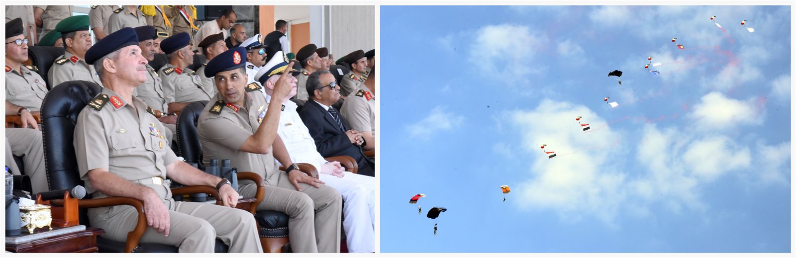 كما شاركت قوات المظلات باستعراض مهاراتها الاحترافية باستخدام معدات الدلتا وإسقاط مجموعات القفز الحر ، وقدمت الموسيقات العسكرية عرضاً متميزاً عكس مدى التوافق الحركى والتناغم فى الأداء ، واختتمت العروض بالعرض العسكرى شارك فيه مجموعات من طلبة المعهد يتقدمهم حملة الأعلام ، وعزفت الموسيقات العسكرية سلام الشهيد فى تقليد راسخ وأصيل عرفاناً بتضحيات شهدائنا الأبرار , وتم تكريم أسرة الشهيد مساعد محمد محمود مصطفى حربى تقديراً لما قدمه للوطن من تضحية وفداء .