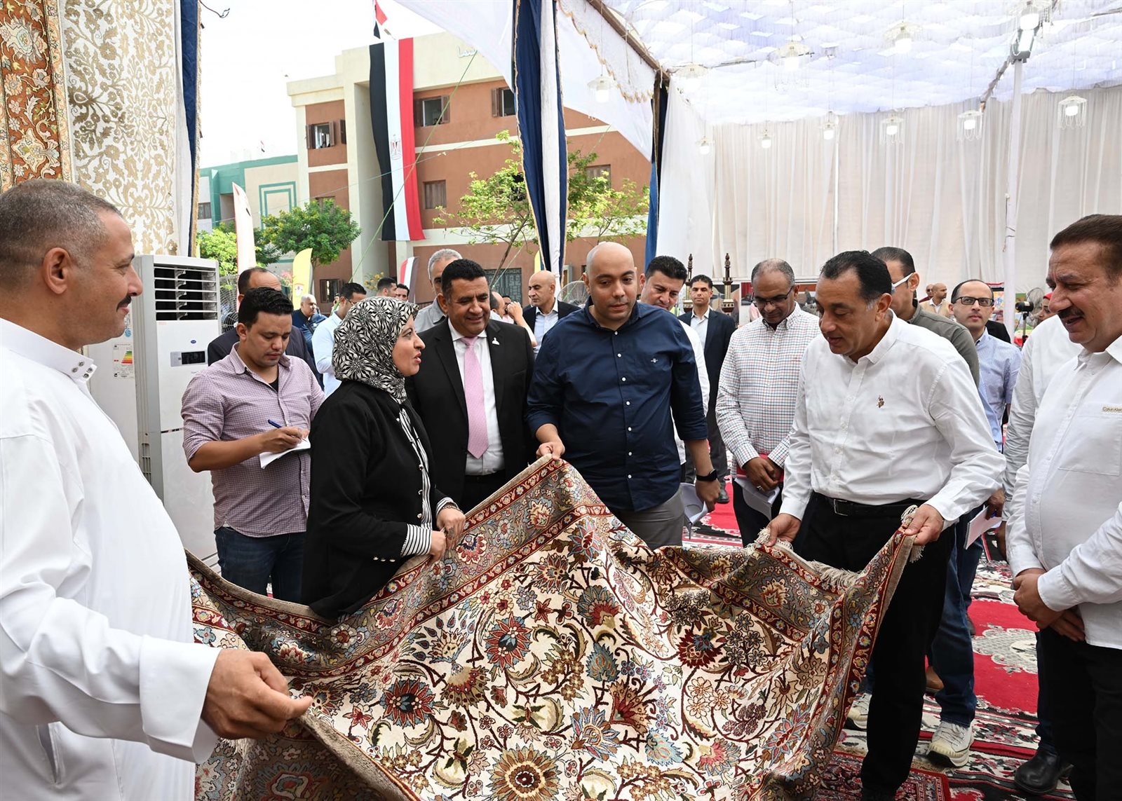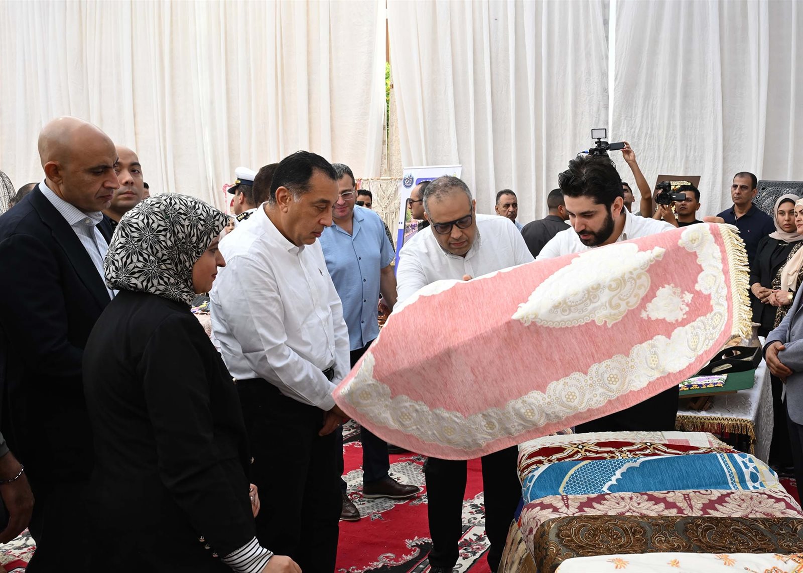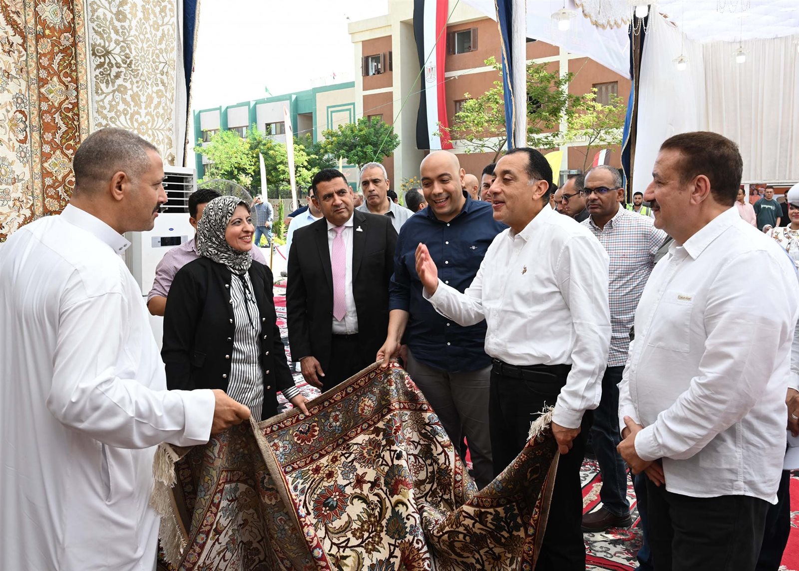 وتفقد رئيس الوزراء جانباً من أقسام المعرض وتعرف على منتجاته المتنوعة، وأدار حواراً مع العارضين والعارضات، حيث أشاد بجودة الصناعات الحرفية بالمعرض بشكل عام، والسجاد اليدوي بشكل خاص.