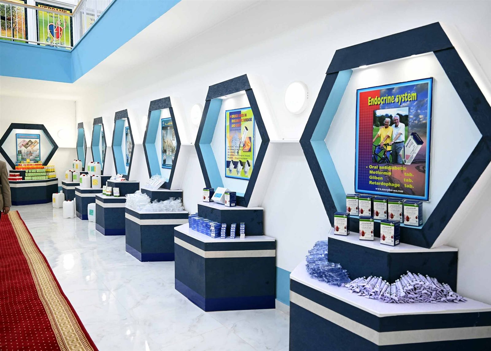 كما تفقد رئيس الوزراء ومرافقوه معرضًا لمنتجات الشركة، حيث استمع إلى شرح من الدكتورة أماني هارون، رئيس القطاع الفني للشركة القابضة للأدوية والكيماويات والمستحضرات الطبية، حول مكونات المعرض الذي يضم أدوية ومنتجات دوائية متنوعة تشمل: الأقراص والكبسولات، والكيماويات الدوائية، والمضادات الحيوية، ومجموعات التحاليل الطبية، والمعقمات والمطهرات، ومُظهرات ومثبتات الأشعة الطبية، والمنتجات البيطرية، ومحاليل مُركزة للغسيل الكلوي، ومرشحات الكُلى الصناعية، والمحاليل الطبية، والماء المُذيب فضلًا عن مجموعة من الأدوية المنتجة لمختلف الاستخدامات.