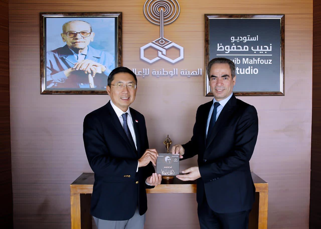 رئيس الوطنية للإعلام يهدي نسخة من أغاني أم كلثوم لسفير سنغافورة بمصر