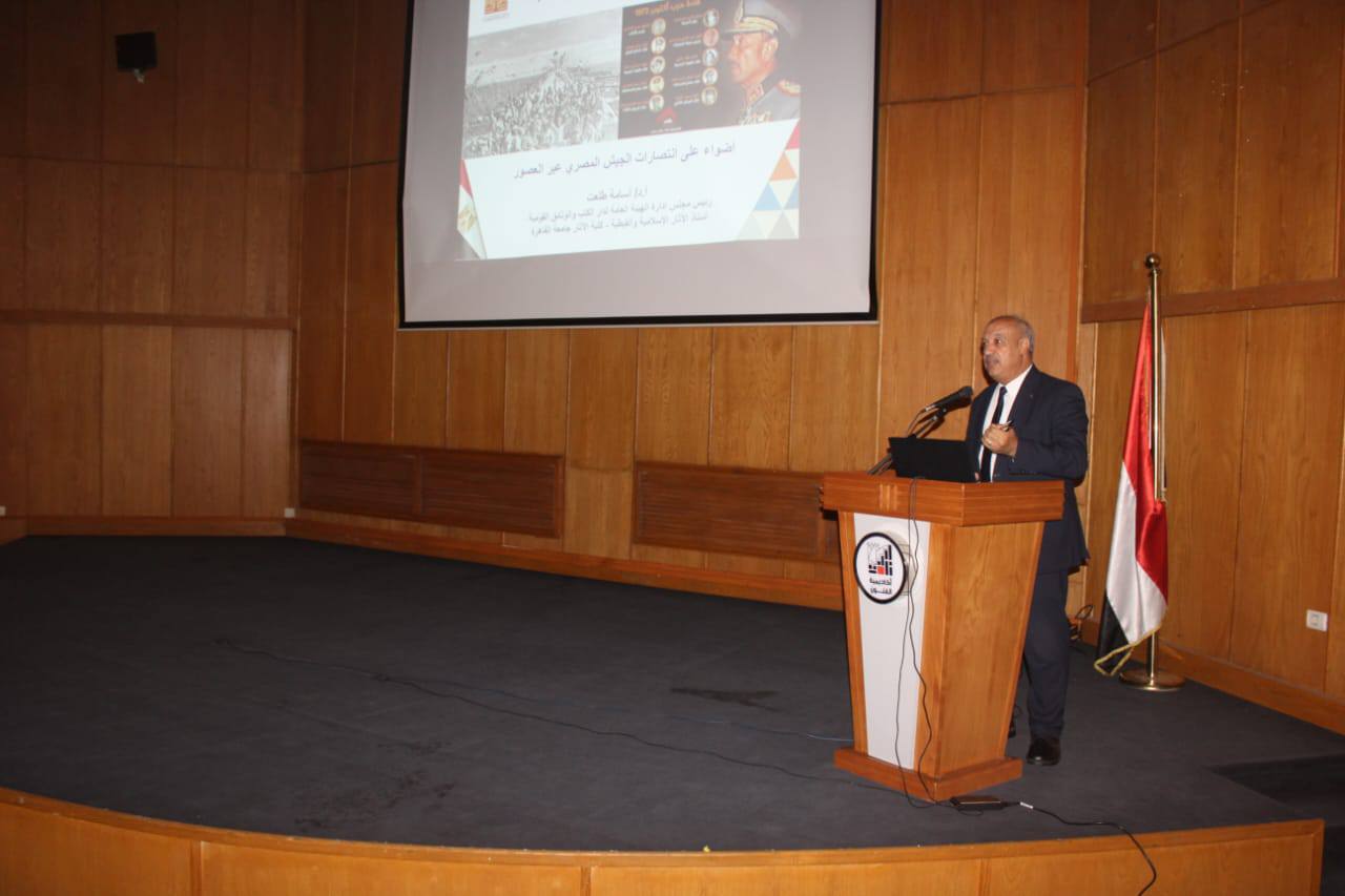 وعقب الجولة، أقيمت ندوة تثقيفية حاضر فيها الأستاذ الدكتور أسامة طلعت، رئيس دار الكتب والوثائق القومية، بعنوان "أضواء على انتصارات الجيش المصري عبر العصور"، وذلك في إطار احتفالات أكتوبر التي تجسد روح النصر والعزة الوطنية.