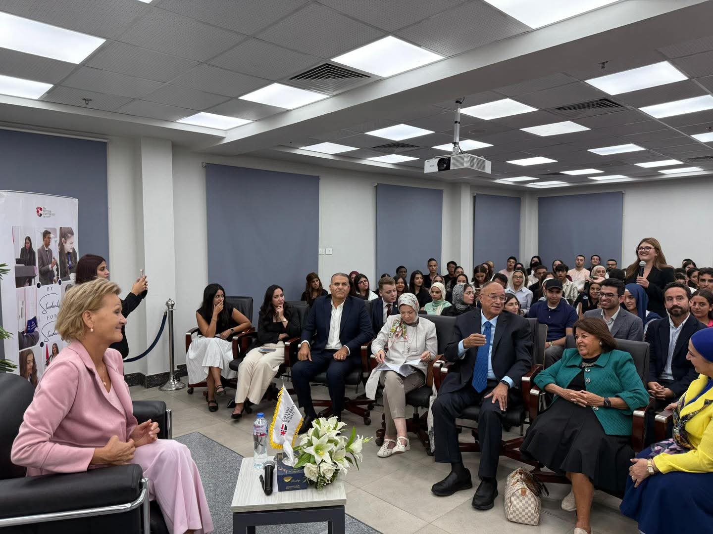كما ألقت إيخهورست محاضرة لطلاب الجامعة تناولت فيها الشراكة القائمة بين الاتحاد الأوروبي ومصر في مجالات التعليم والبحث، واستعرضت الفرص المتاحة أمام الشباب المصري في مجالات الابتكار والتبادل الأكاديمي والثقافي.