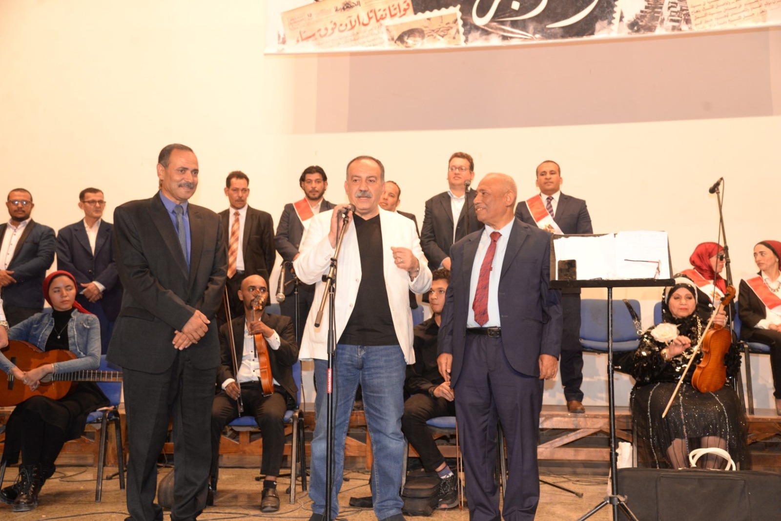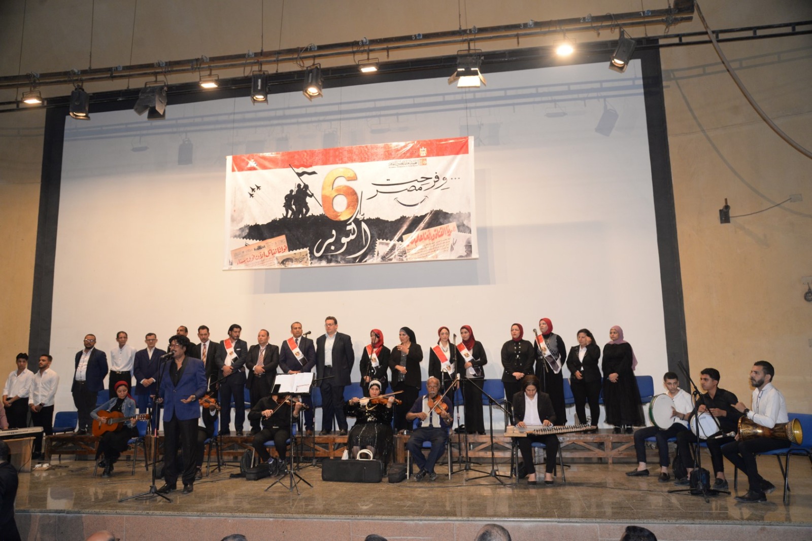 شهد اللواء دكتور هشام أبو النصر محافظ أسيوط، احتفالية الهيئة العامة لقصور الثقافة بمناسبة الذكرى الثانية والخمسين لانتصارات أكتوبر المجيدة، والتي أقيمت تحت عنوان "وفرحت مصر" على مسرح قصر ثقافة أسيوط، وسط حضور رسمي وجماهيري كبير.