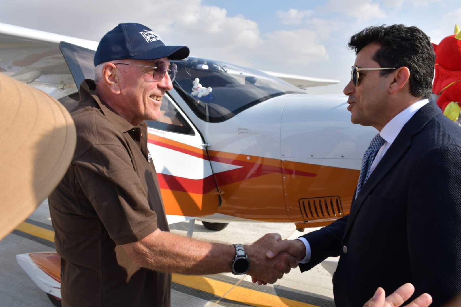 وكان في استقبال الوزير اللواء محمود السيد قرمد، نائب مدير مطار سفنكس الدولي، وأحمد عبد الخالق، مدير عام الادارة العامة للفعاليات والسياحة الرياضية بوزارة الشباب والرياضة، والدكتور ياسر المنيسي، مدير الرالي.