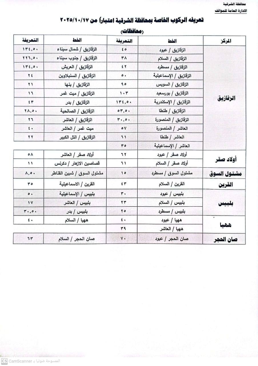 اعتمد المهندس حازم الأشموني، محافظ الشرقية، تعريفة الركوب الجديدة لـ«سيارات الأجرة العاملة بجميع الخطوط – سيارات السرفيس بخطوط السير داخل المدن» بنطاق المحافظة، وذلك بعد تحريك سعر المواد البترولية بمعرفة لجنة التسعير التلقائي للمواد البترولية.