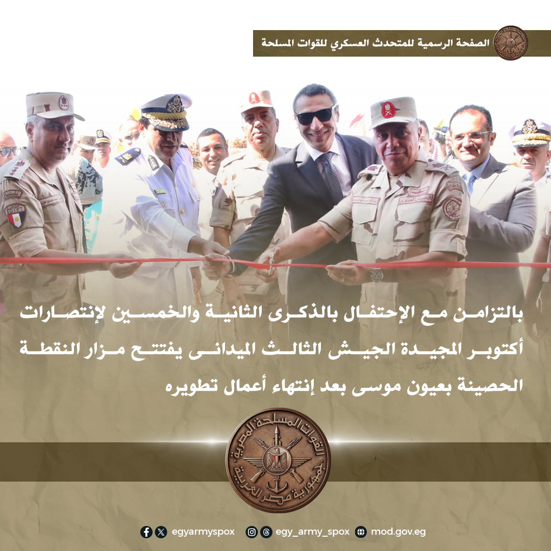 بالتزامن مع احتفالات مصر والقوات المسلحة بالذكرى الثانية والخمسين لانتصارات أكتوبر المجيدة، افتتح اللواء أ ح أحمد مهدى سرحان قائد الجيش الثالث الميدانى مزار النقطة الحصينة بعيون موسى بعد الانتهاء من أعمال تطويره ورفع كفاءته بما يتماشى مع الأهمية التاريخية للموقع.