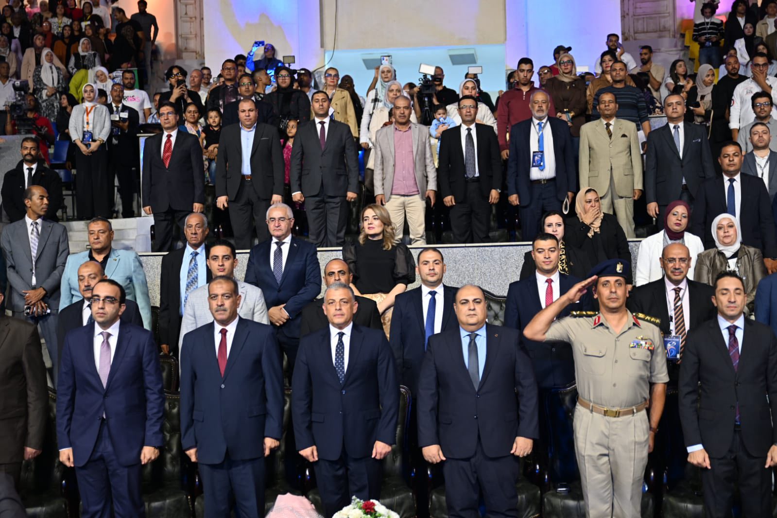 حضر الافتتاح اللواء أكرم جلال محافظ الإسماعيلية، واللواء خالد اللبان مساعد وزير الثقافة لشئون رئاسة الهيئة العامة لقصور الثقافة، بحضور المهندس أحمد عصام الدين نائب المحافظ، اللواء محمد عامر مساعد وزير الداخلية ومدير أمن الإسماعيلية، المهندس أحمد محمد الإسكندراني السكرتير العام لمحافظة الإسماعيلية، العميد محمد فرج شعلان المستشار العسكري للمحافظة، الكاتب محمد عبد الحافظ ناصف مستشار رئيس الهيئة العامة لقصور الثقافة للشئون الثقافية والفنية، الفنان أحمد الشافعي رئيس الإدارة المركزية للشئون الفنية، الشاعر د. مسعود شومان رئيس الإدارة المركزية للشئون الثقافية، والفنان ماهر كمال مدير المهرجان ومخرج الحفل، د. شعيب خلف مدير عام إقليم القناة وسيناء الثقافي، إيمان حمدي مدير عام الإدارة العامة للمهرجانات، شيرين عبد الرحمن مدير عام ثقافة الإسماعيلية، ووفود الدول المشاركة ولفيف من الإعلاميين والقيادات الثقافية والتنفيذية بالمحافظة.