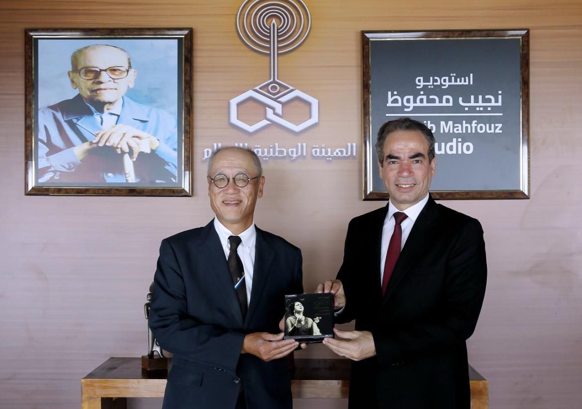 رئيس الوطنية للإعلام يهدي سفير اليابان نسخة من أغاني أم كلثوم