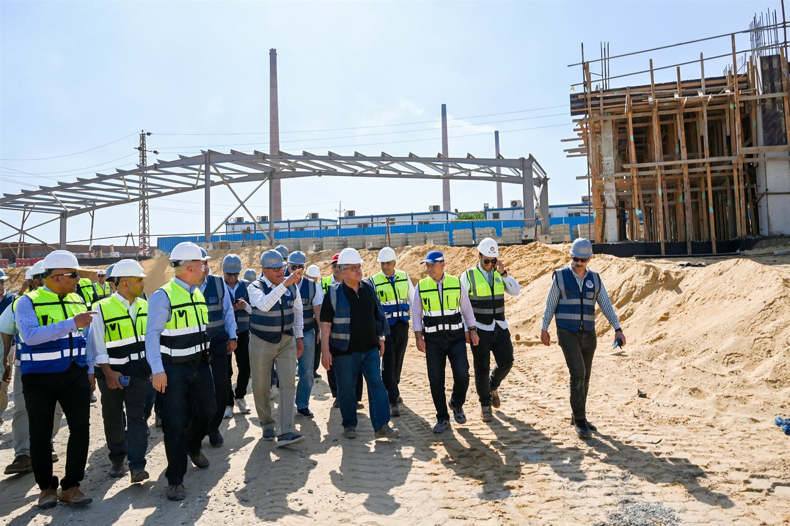 ثم قام بجولة تفقدية في الموقع الذي يمتد لمساحة ١٧ فدان وحرص على اجراء حوارات مع العاملين والاستشاريين التنفيذين بالمشروع واستشاري البنك الأوروبي، مشيدا بالجهد المبذول من كافة العاملين بالمشروع وكذا الدور المجتمعي الذي تقوم به مصانع وشركات الهيئة في خدمة المجتمع والمواطن.