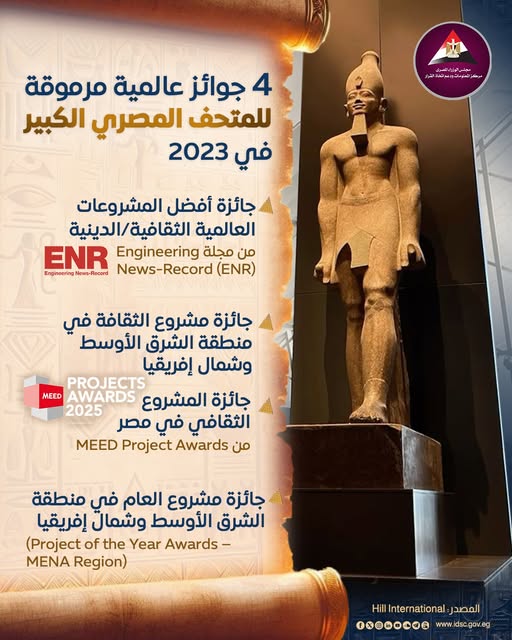 وجاءت هذه الجوائز تتويجًا لجهود استمرت على مدار عقدين من العمل المتواصل، ليصبح المتحف المصري الكبير واجهة حضارية لمصر الحديثة ورسالة سلام وثقافة إلى العالم، بما يحتويه من أكثر من 100 ألف قطعة أثرية توثّق تاريخ الإنسانية من عصور الفراعنة حتى العصر الحديث.