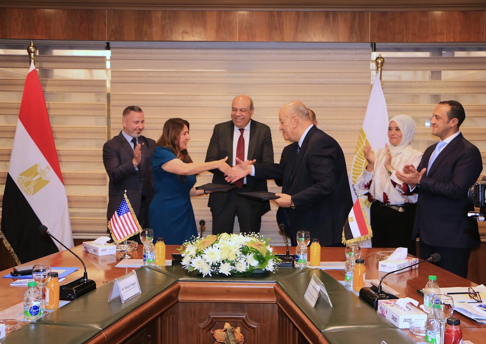 قام بتوقيع مذكرة التفاهم من الجانب الأمريكي السفيرة هيرو مصطفى غارغ سفيرة الولايات المتحدة الأمريكية لدى جمهورية مصر العربية، ومن الجانب المصري المحاسب مجدي إسحاق، رئيس شركة ميناء القاهرة الجوي، وذلك بحضور لفيف من قيادات وزارة الطيران المدني والسفارة الأمريكية بالقاهرة.