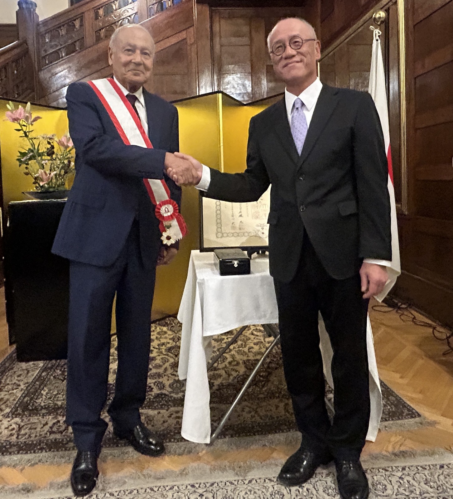 وفي كلمته خلال الحفل، قدّم السفير الياباني في القاهرة أوكا إيواي عرضًا لأبرز إنجازات معالي الأمين العام، مهنئًا إياه على نيله هذا الوسام الرفيع، ومشيدًا بدوره في توطيد العلاقات الودية بين اليابان والعالم العربي.