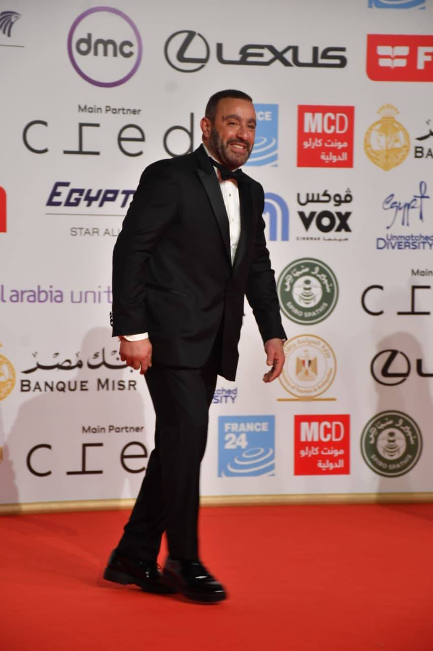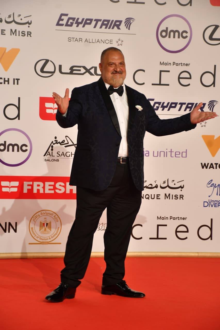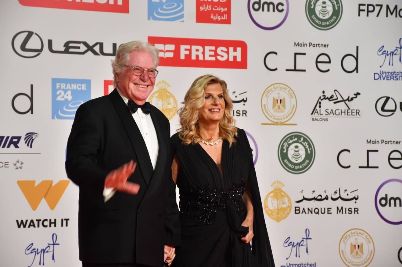 حسين فهمى وزوجته والسقا والصاوي ولبلبة والفقي في افتتاح القاهرة السينمائي