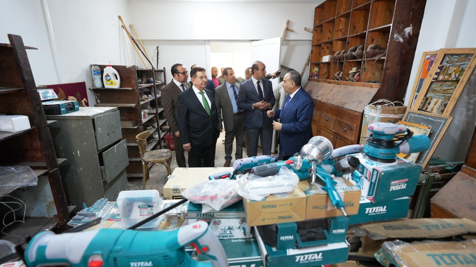 وشملت الجولة المرور على الورش التدريبية داخل المركز، ومنها ورش الخياطة والتطريز والمنتجات الجلدية، للاطلاع على جاهزية المعدات وسير عمليات التطوير. وشدد المحافظ على سرعة إنهاء المتبقي من أعمال الصيانة والتجهيز، تمهيدًا لبدء البرامج التدريبية فور الافتتاح.