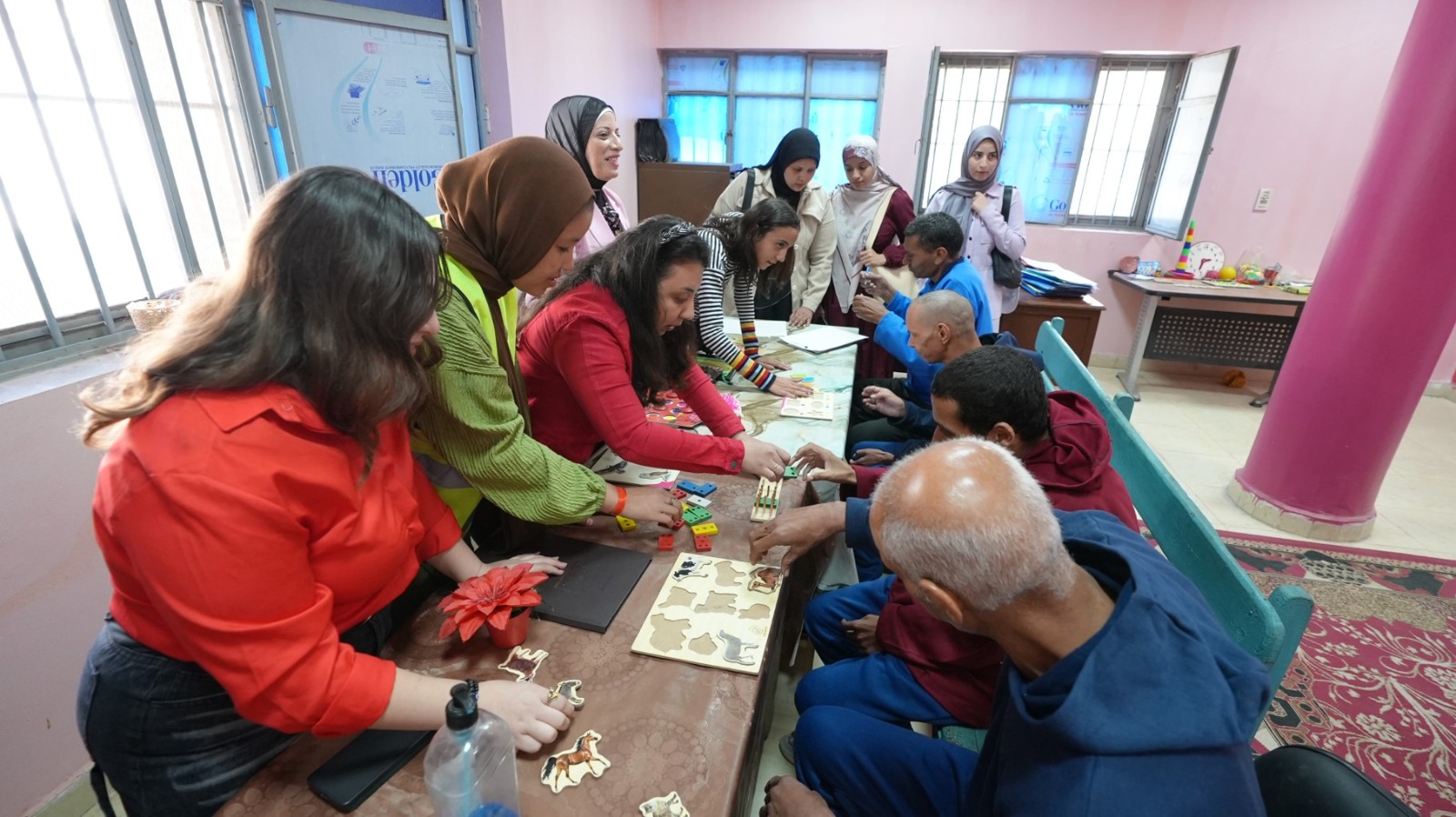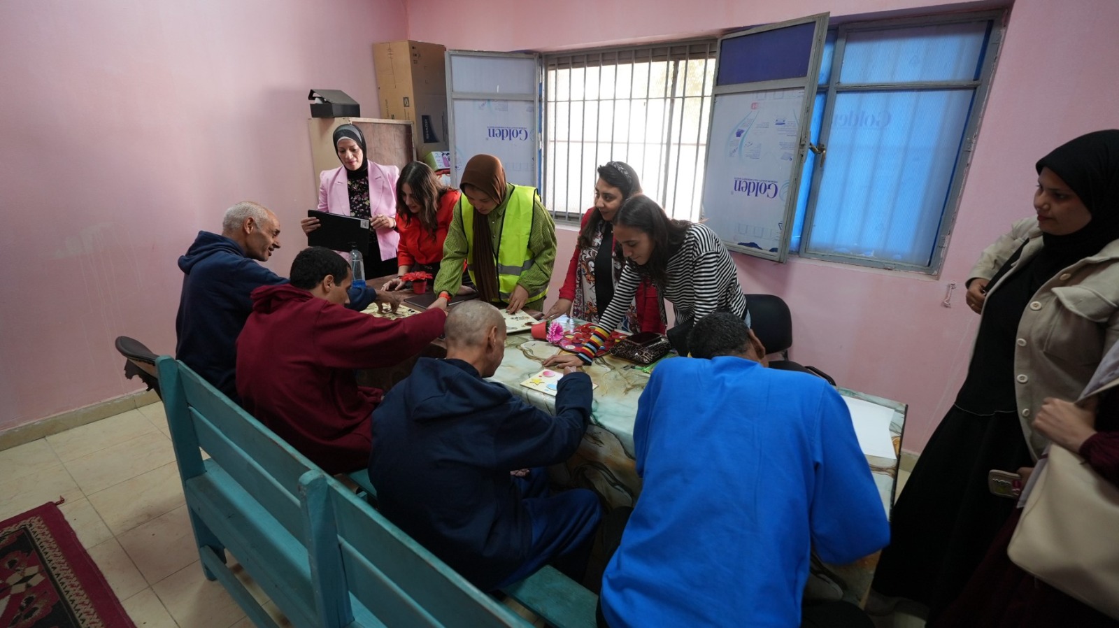 وتجوّل المحافظ ومرافقوه داخل أرجاء المعرض، حيث تضمنت المعروضات باقة واسعة من المشغولات اليدوية والمفروشات والملابس الجاهزة والمخبوزات والإكسسوارات، وجميعها من إنتاج نزلاء الدار الذين شاركوا في إعدادها ضمن ورش تدريبية تهدف إلى تطوير مهاراتهم وتأهيلهم للانخراط في سوق العمل.