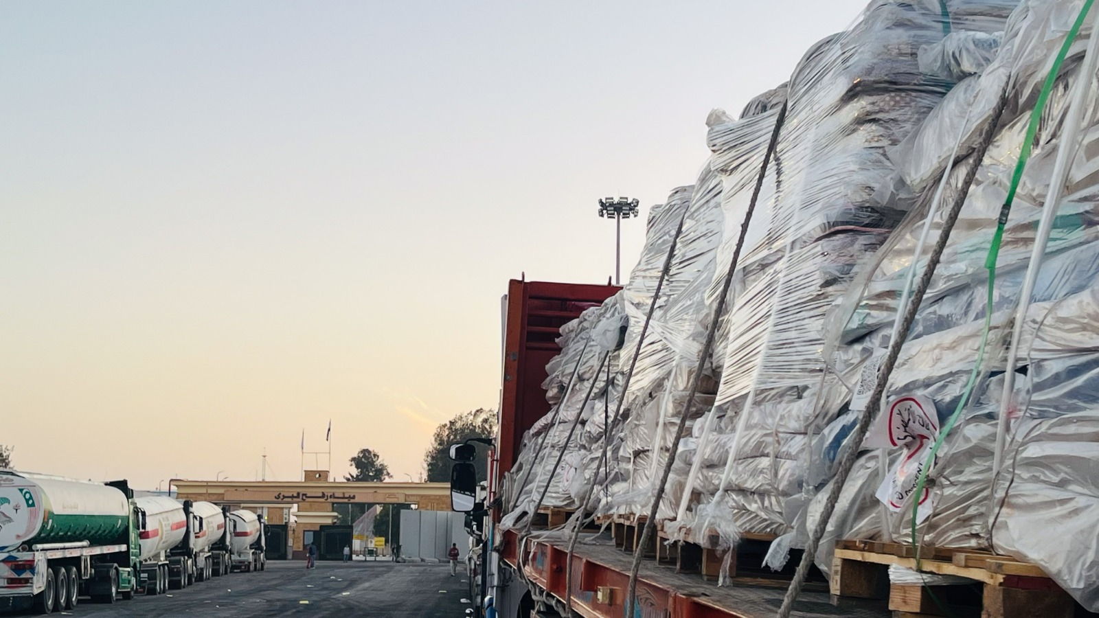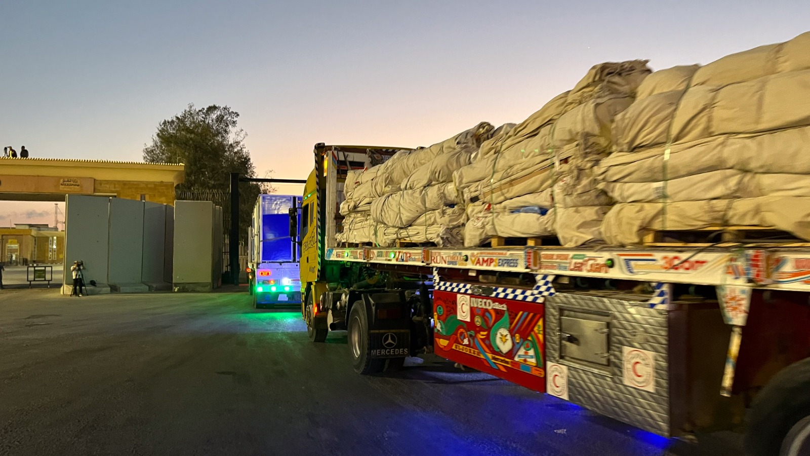 وصرح مصدر مسؤول بـميناء رفح البري في شمال سيناء اليوم، بأن الشاحنات اصطفت في ساحة الانتظار ضمن قافلة "زاد العزة.. من مصر إلى غزة"، مشيرًا إلى أن الشاحنات تخضع للتفتيش من قبل سلطات الاحتلال الإسرائيلي على معبر كرم أبوسالم جنوب شرق قطاع غزة قبل إدخالها إلى القطاع.