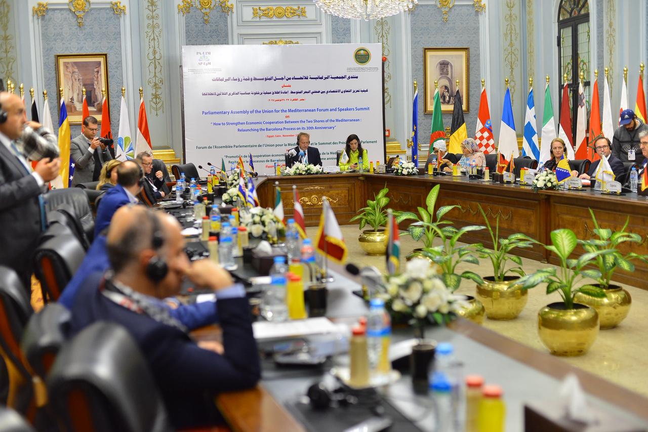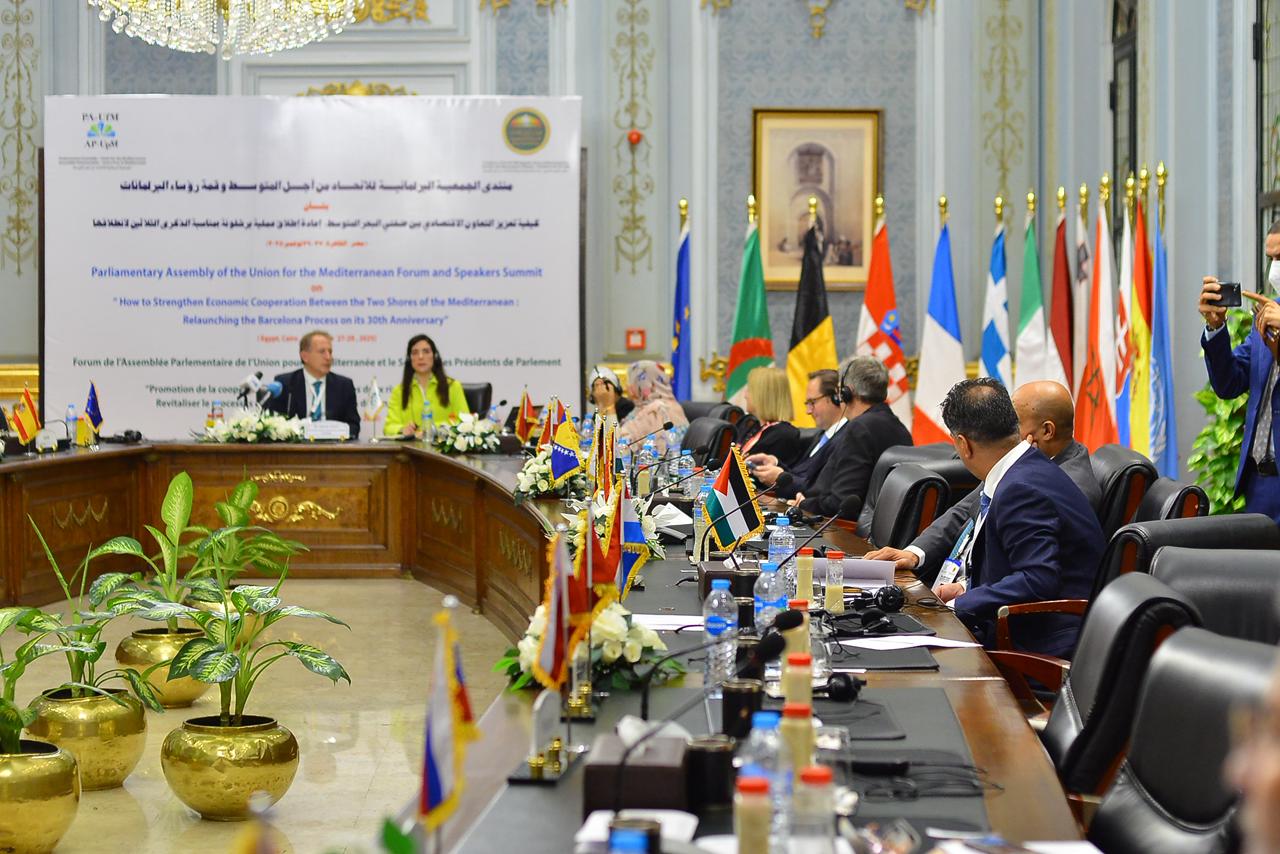 ويستضيف مجلس النواب أعمال المنتدى والقمة الرئيسية تحت عنوان «كيفية تعزيز التعاون الاقتصادي بين ضفتي المتوسط بمناسبة الذكرى الثلاثين لإطلاق عملية برشلونة»، ما يركز على دفع الشراكة الاقتصادية والأمنية بين ضفتي المتوسط.