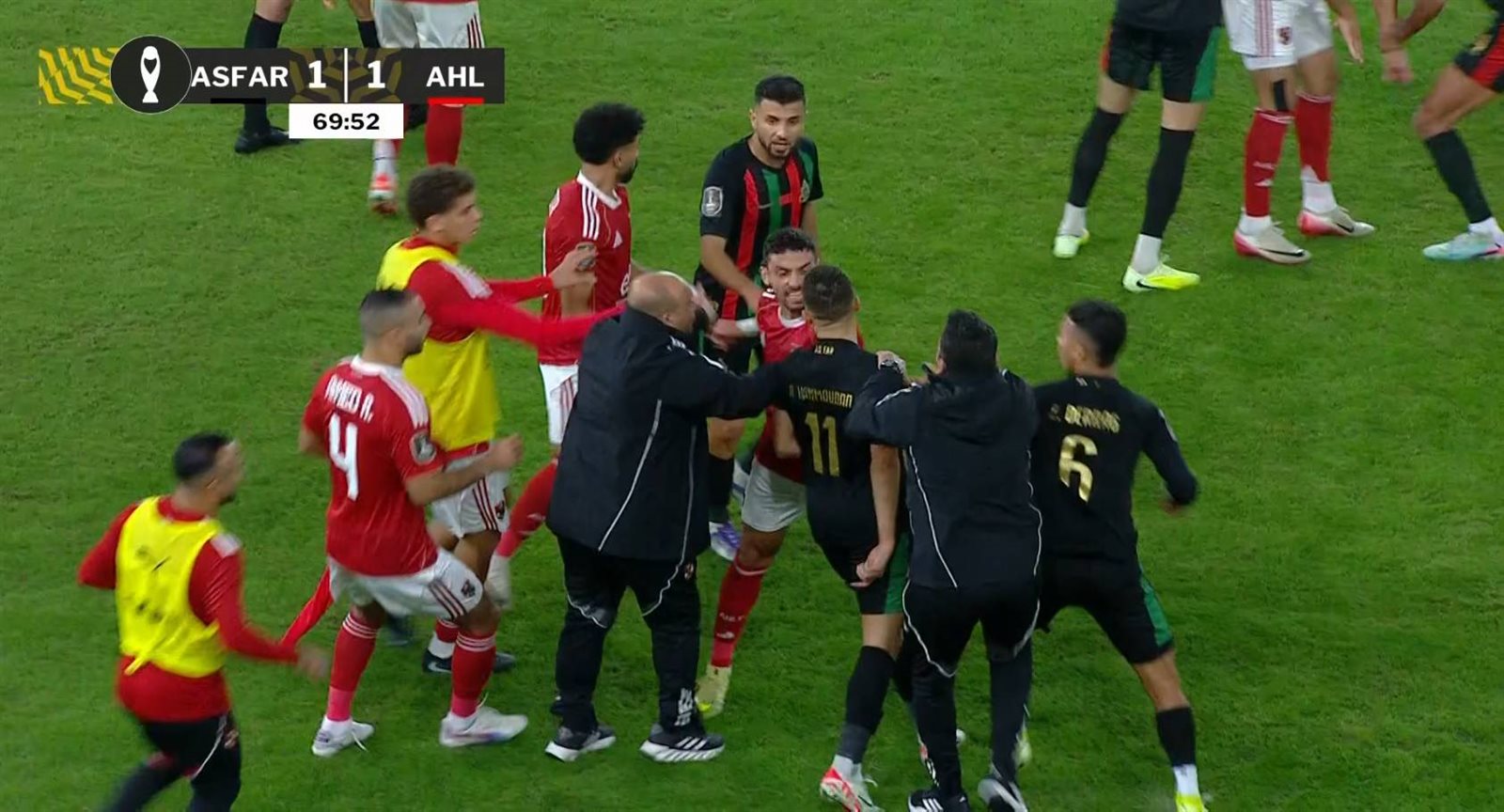 تدخل الجهازان الفنيان وحكم المباراة سريعًا لاحتواء الموقف، وانتهت الاشتباكات دون أي مضاعفات كبيرة على مجريات اللقاء.