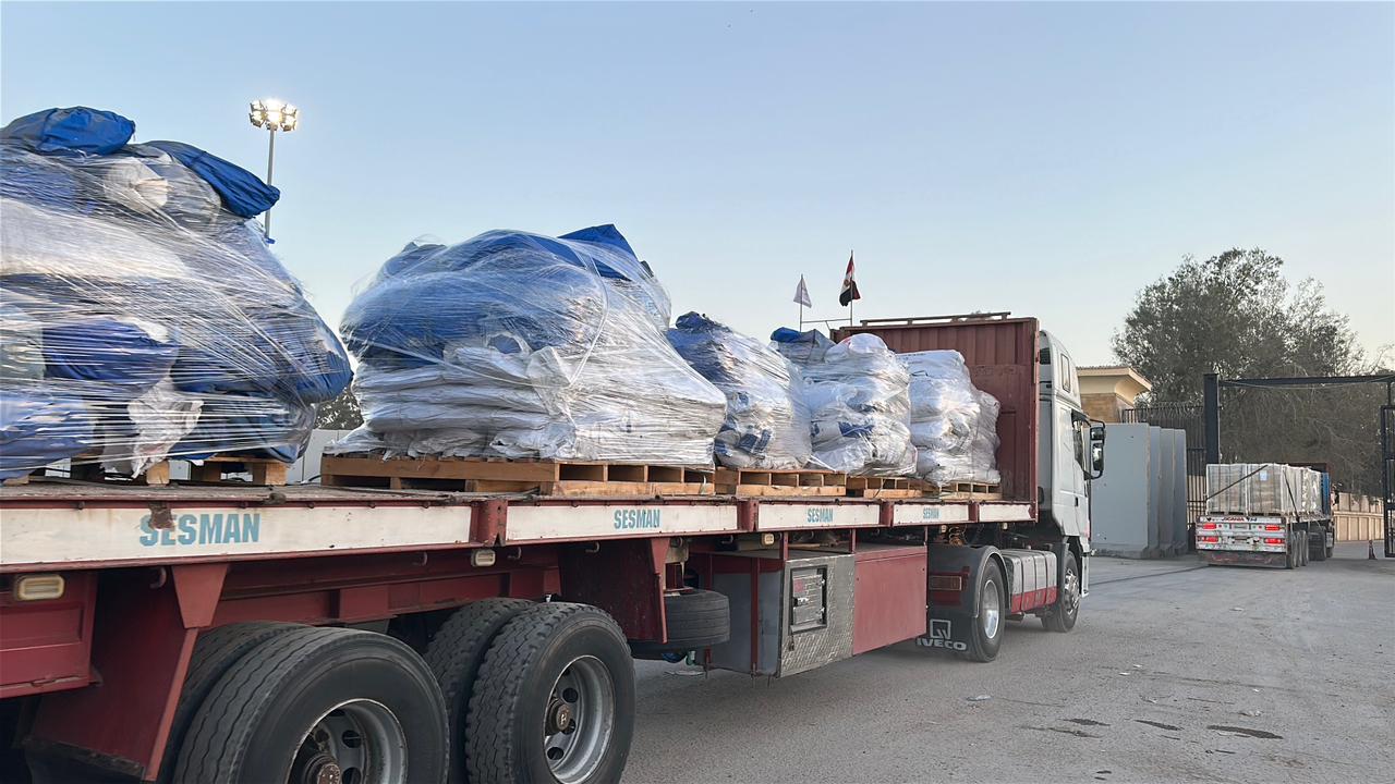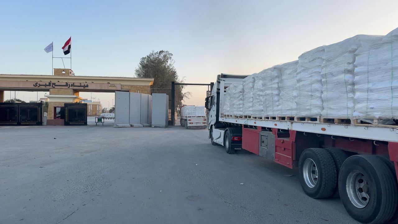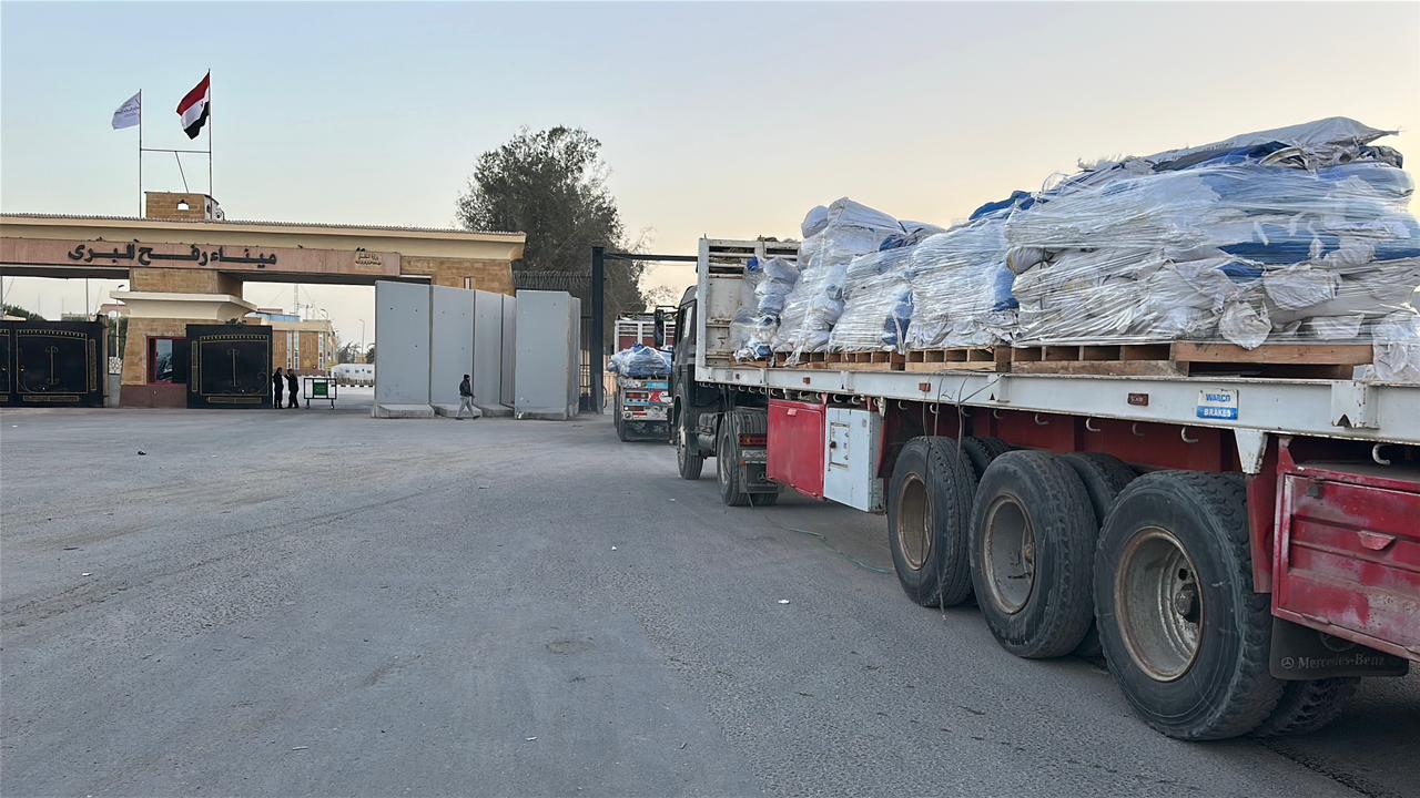 وصرح مصدر مسؤول بميناء رفح البري في شمال سيناء، اليوم، بأن الشاحنات اصطفت في ساحة الانتظار ضمن قافلة "زاد العزة..من مصر إلى غزة".. مشيرا إلى أن الشاحنات تخضع للتفتيش من قبل سلطات الاحتلال الإسرائيلي على معبر كرم أبو سالم جنوب شرق قطاع غزة قبل إدخالها إلى القطاع.