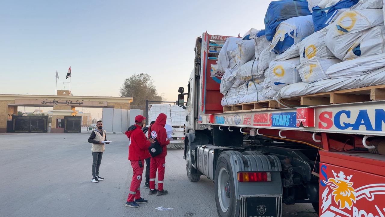 وأعلن الهلال الأحمر، أن القافلة الـ88 تحمل عددا من شاحنات المساعدات الإنسانية العاجلة في اتجاه قطاع غزة، وذلك في إطار جهوده المتواصلة كآلية وطنية لتنسيق المساعدات إلى غزة.