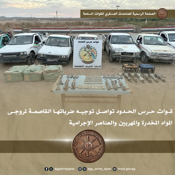 تأتى تلك النجاحات تتويجاً للجهود المكثفة التي تنفذها قوات حرس الحدود على مدار الساعة لإحكام السيطرة الأمنية على كافة المنافذ والمعابر الحدودية على جميع الاتجاهات الاستراتيجية.
