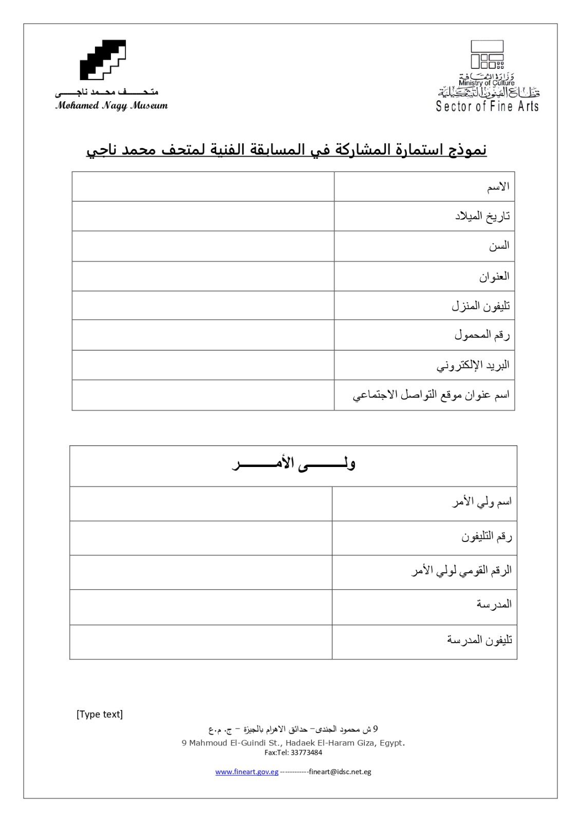 وتطرح استمارة المشاركة على الموقع الإلكتروني لقطاع الفنون التشكيلية: www.fineart.gov.eg