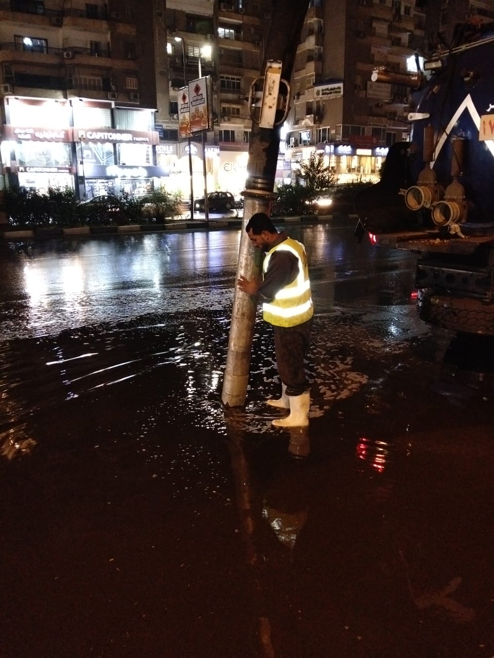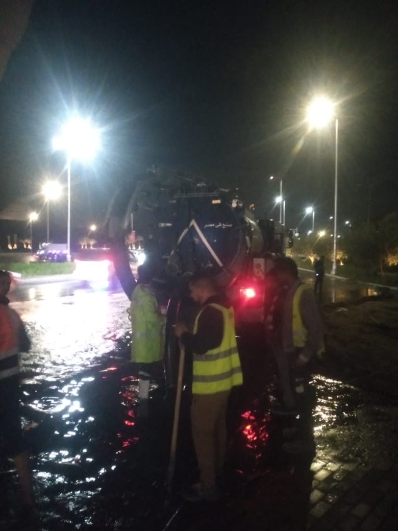 شركة الصرف الصحي بالقاهرة الكبرى تواصل جهود التعامل مع مياه الأمطار.. صور