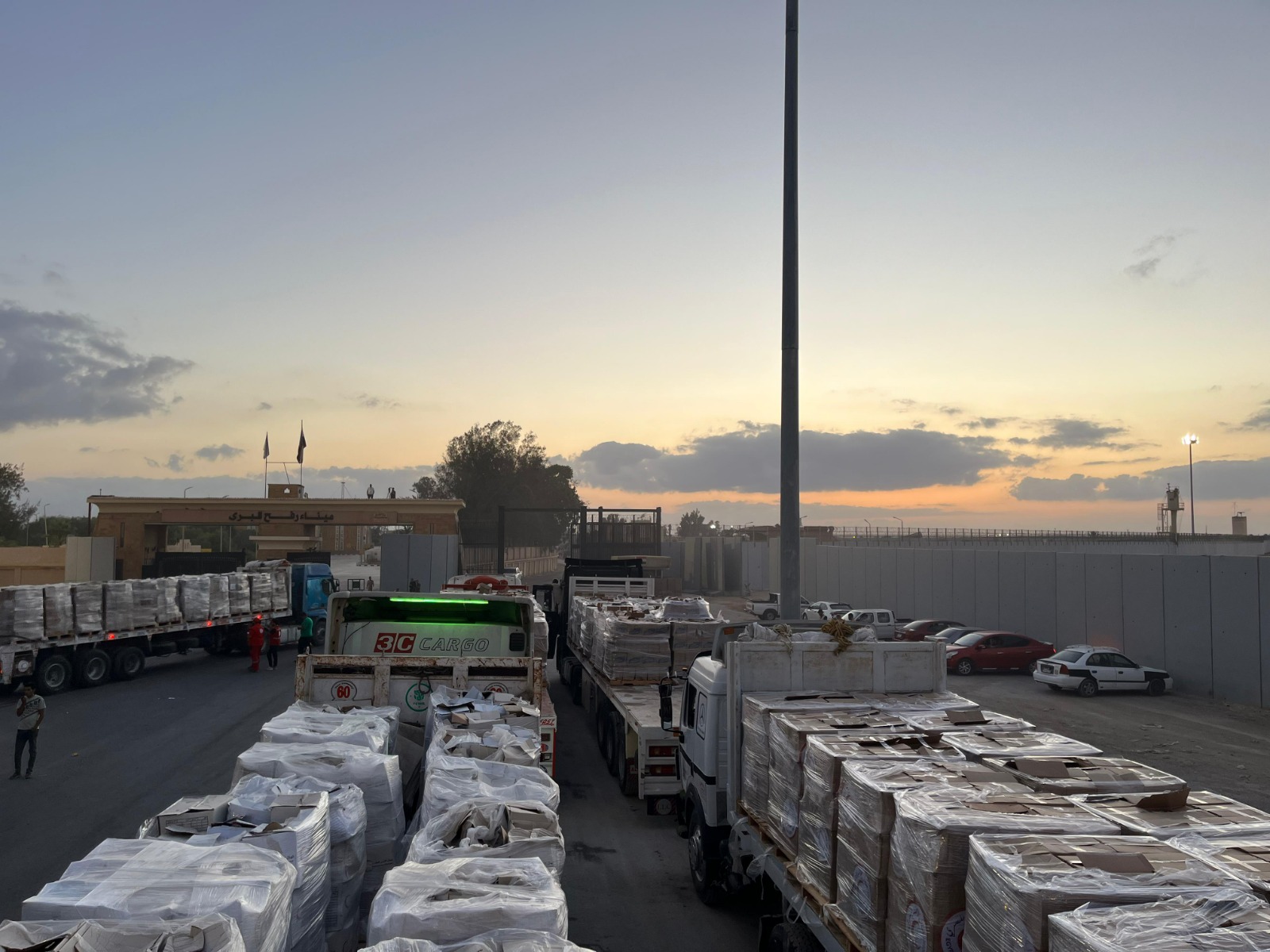 شرعت قافلة شاحنات المساعدات الإنسانية الـ99 في الدخول إلى الفلسطينيين بقطاع غزة، اليوم، عبر البوابة الفرعية لميناء رفح البري بمحافظة شمال سيناء باتجاه معبر كرم أبوسالم؛ تمهيدا لإدخالها إلى القطاع.