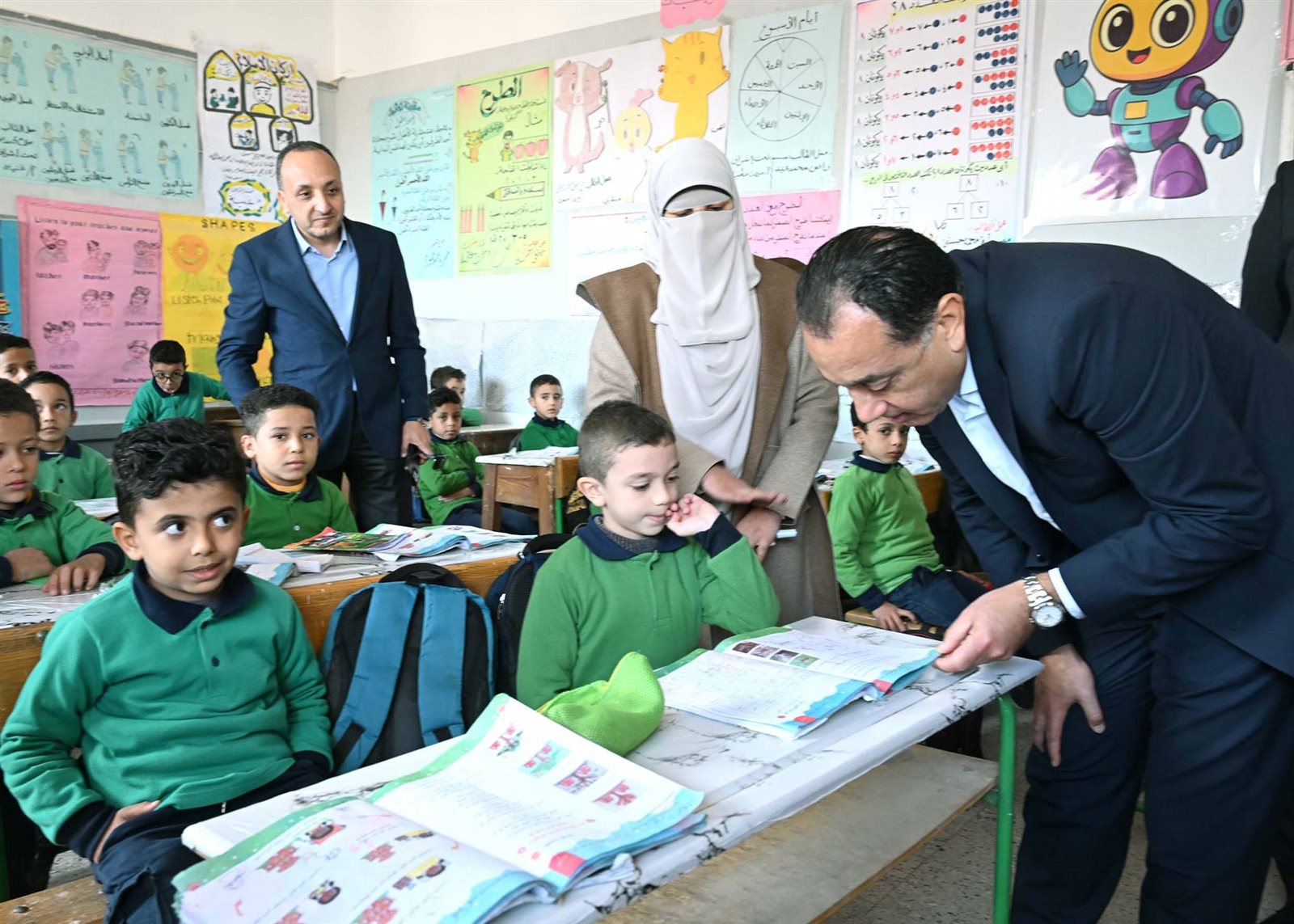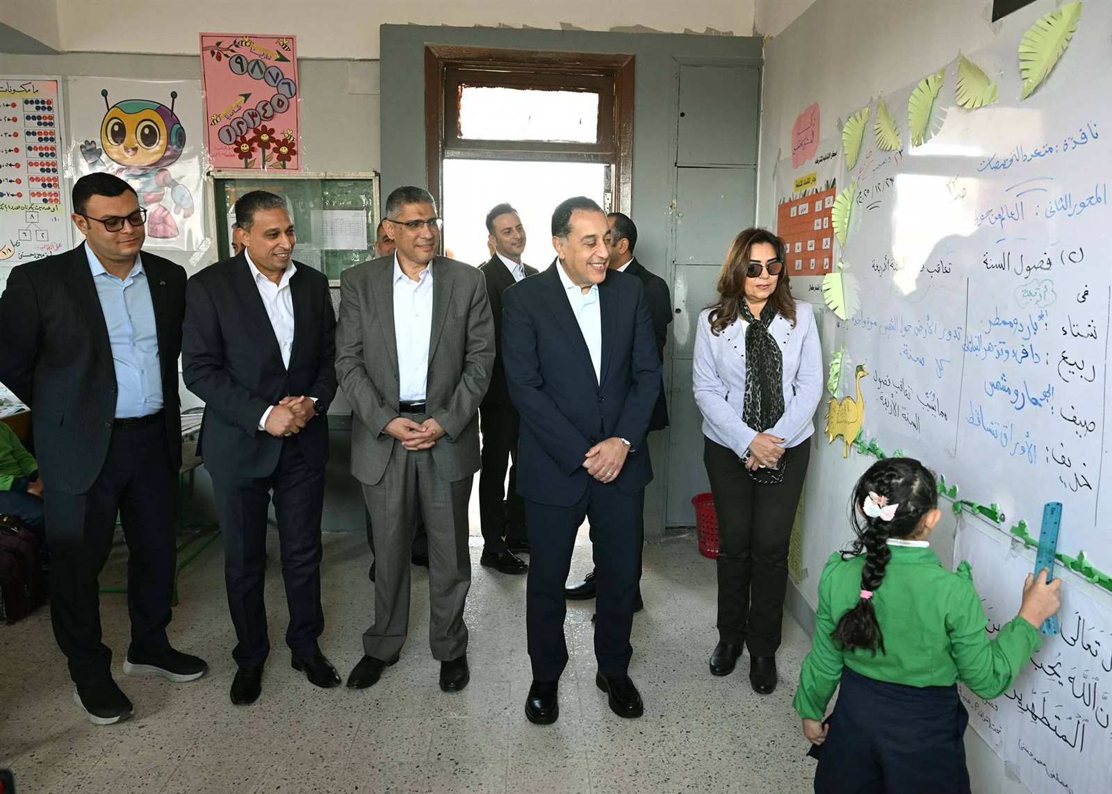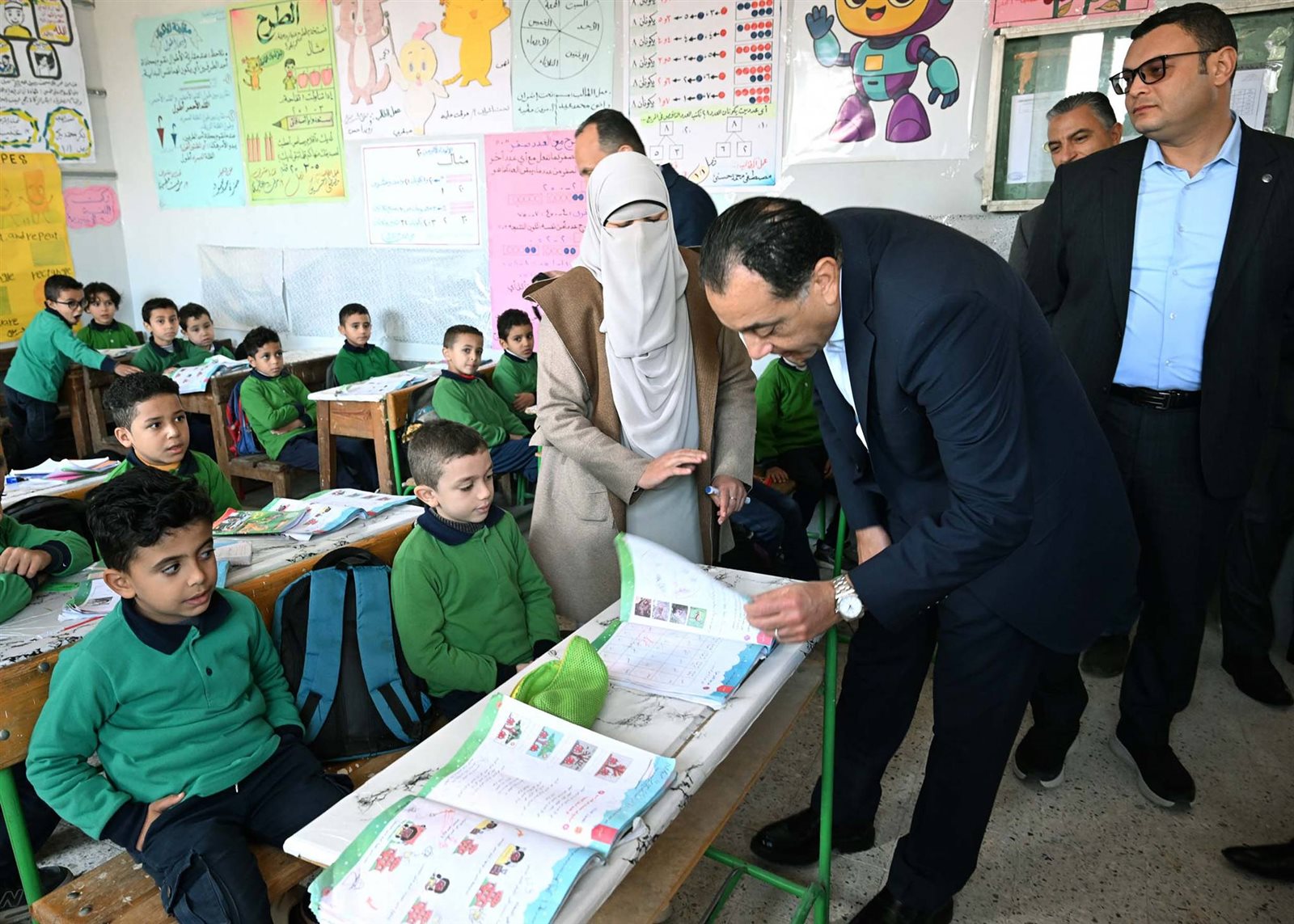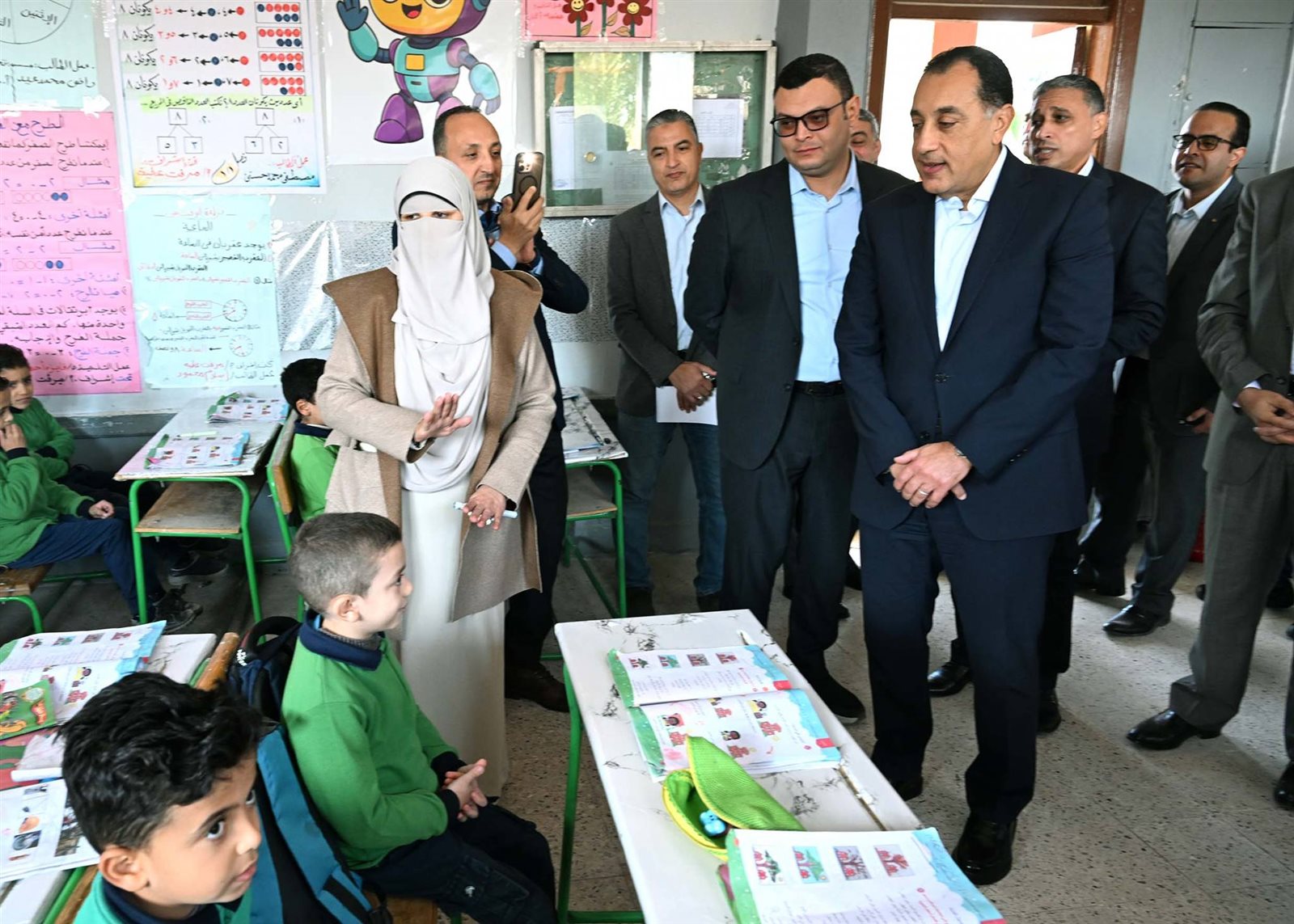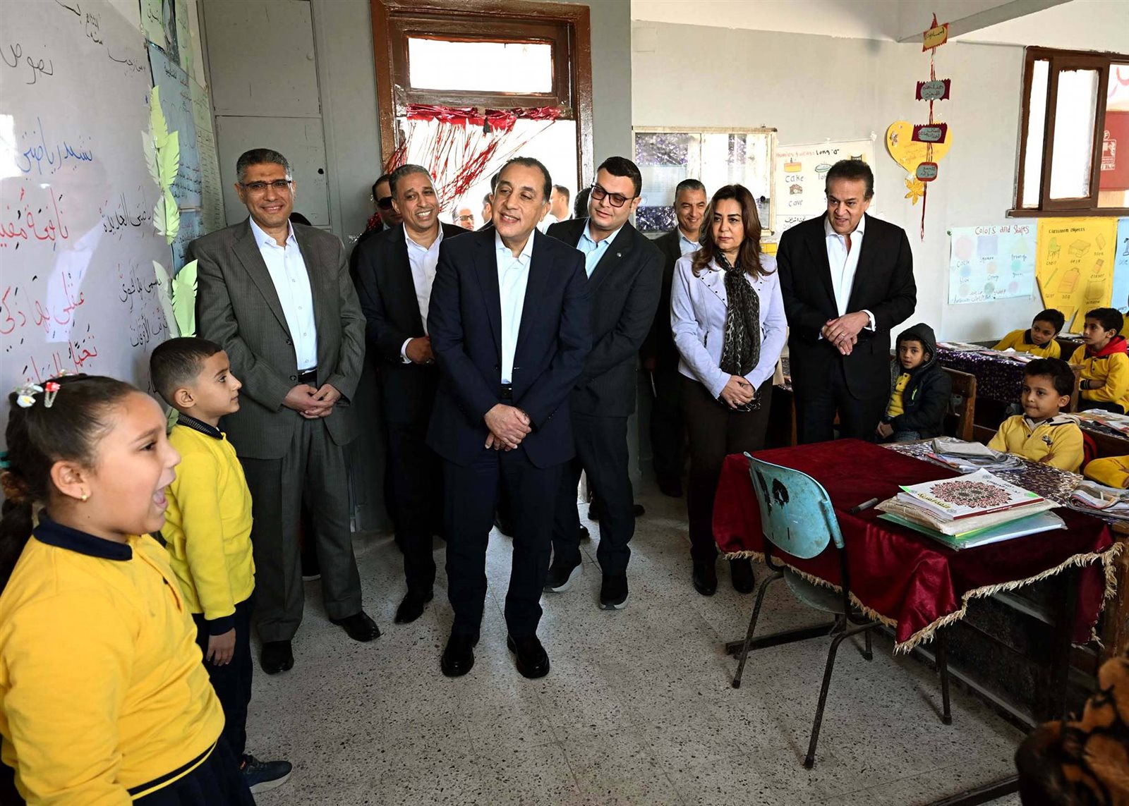 وحرص الدكتور مصطفى مدبولي على حضور إحدى الحصص الدراسية للصف الأول الابتدائي، حيث أعرب للطلاب عن سعادته للاستماع إلى الشرح الملقى عليهم حول فصول السنة، من إحدى الطالبات، وفي غضون ذلك استفسر من مدرسة الفصل حول نسب الحضور والغياب، ومدى استيعاب الطلاب للمقررات الدراسية، كما طلب من إحدى الطالبات قراءة نص من كتاب اللغة العربية، حيث أشاد بها رئيس الوزراء وبنطقها السليم لحروف اللغة، وتمنى لها التوفيق.