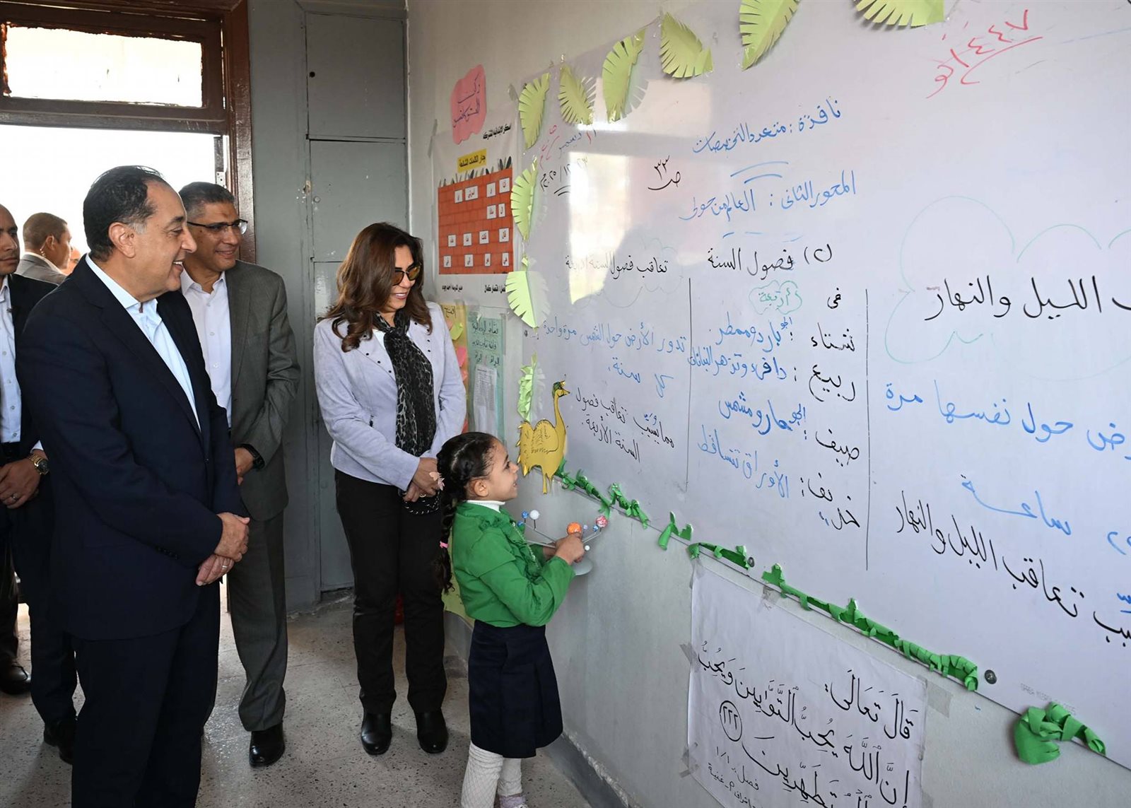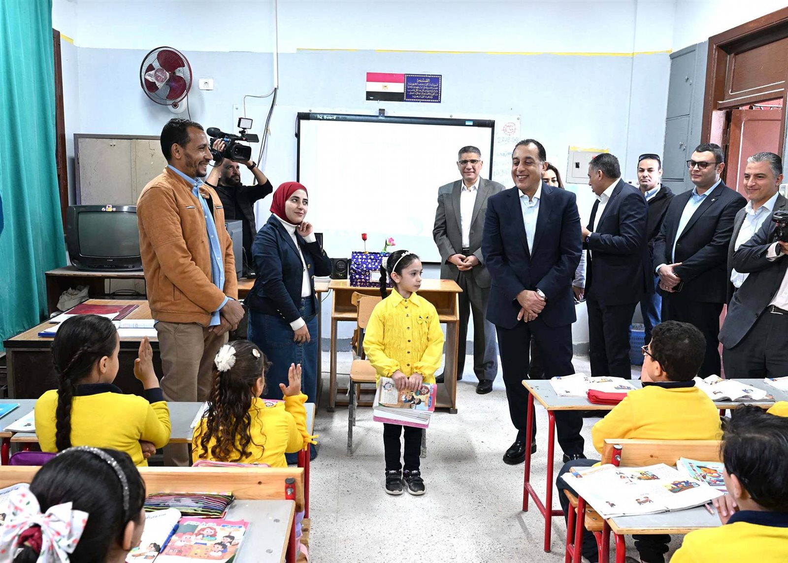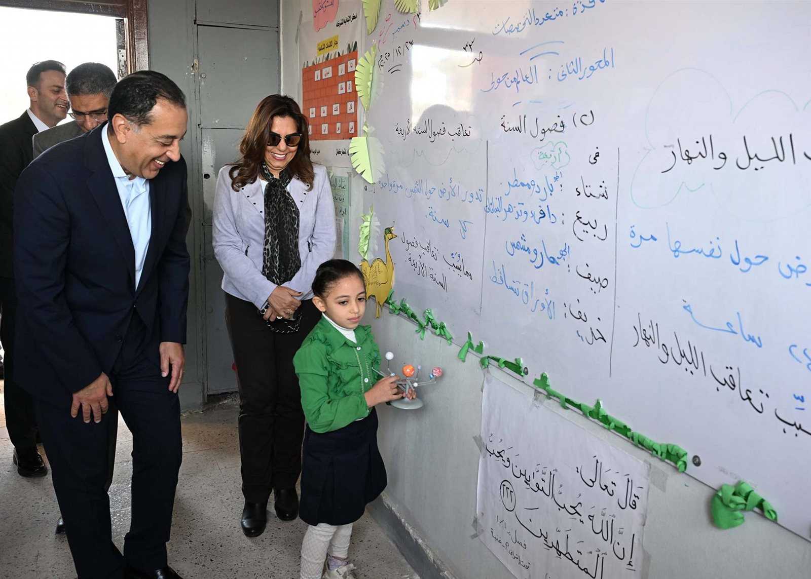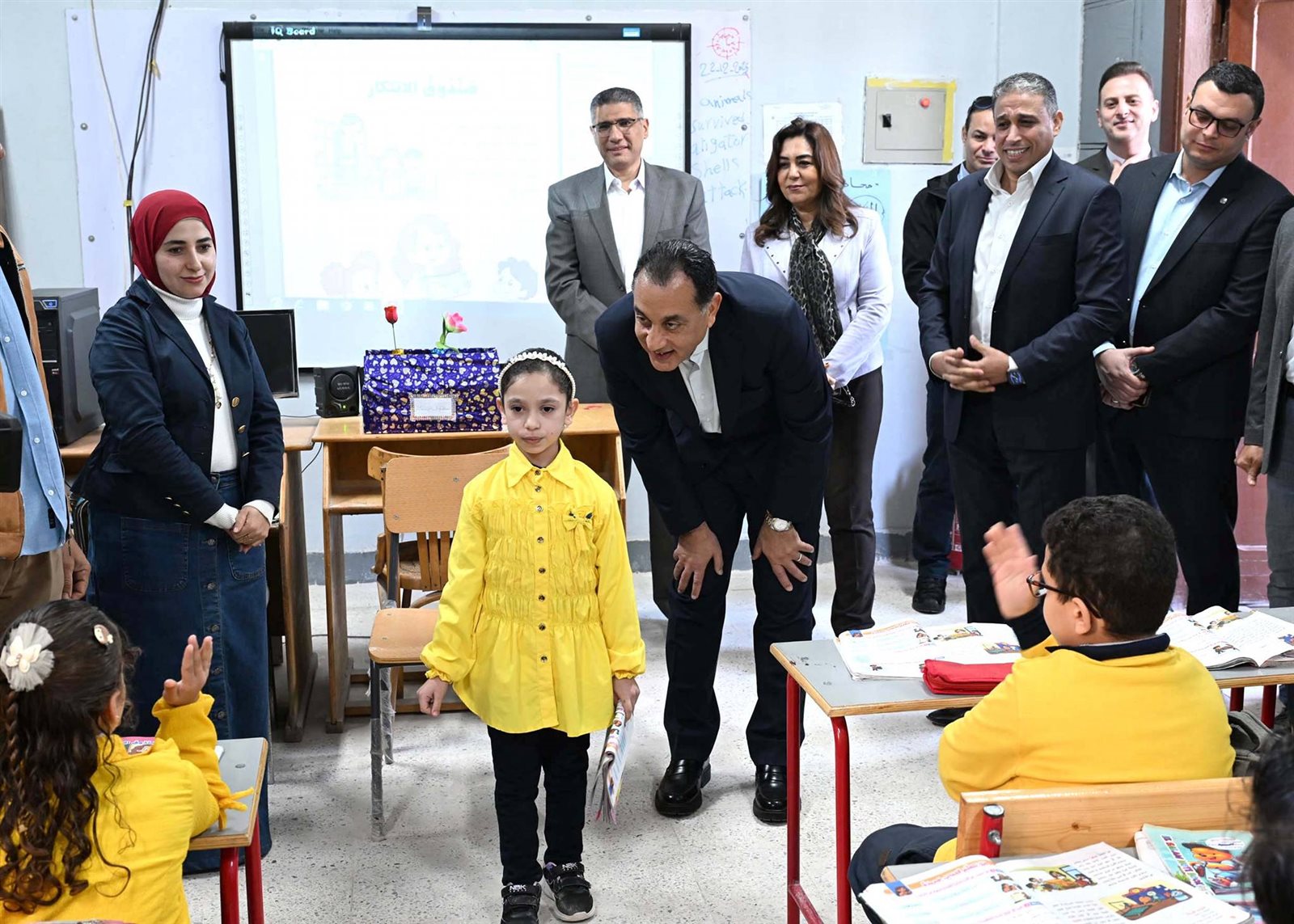 وحرص الدكتور مصطفى مدبولي على حضور إحدى الحصص الدراسية للصف الأول الابتدائي، حيث أعرب للطلاب عن سعادته للاستماع إلى الشرح الملقى عليهم حول فصول السنة، من إحدى الطالبات، وفي غضون ذلك استفسر من مدرسة الفصل حول نسب الحضور والغياب، ومدى استيعاب الطلاب للمقررات الدراسية، كما طلب من إحدى الطالبات قراءة نص من كتاب اللغة العربية، حيث أشاد بها رئيس الوزراء وبنطقها السليم لحروف اللغة، وتمنى لها التوفيق.