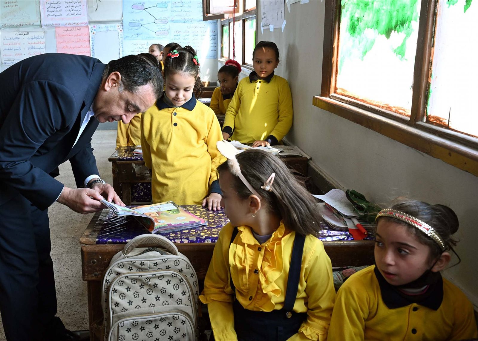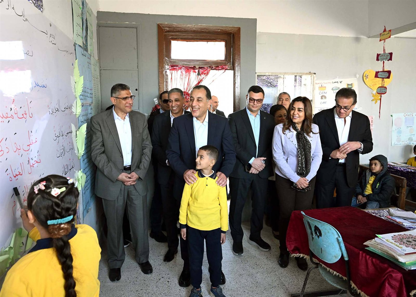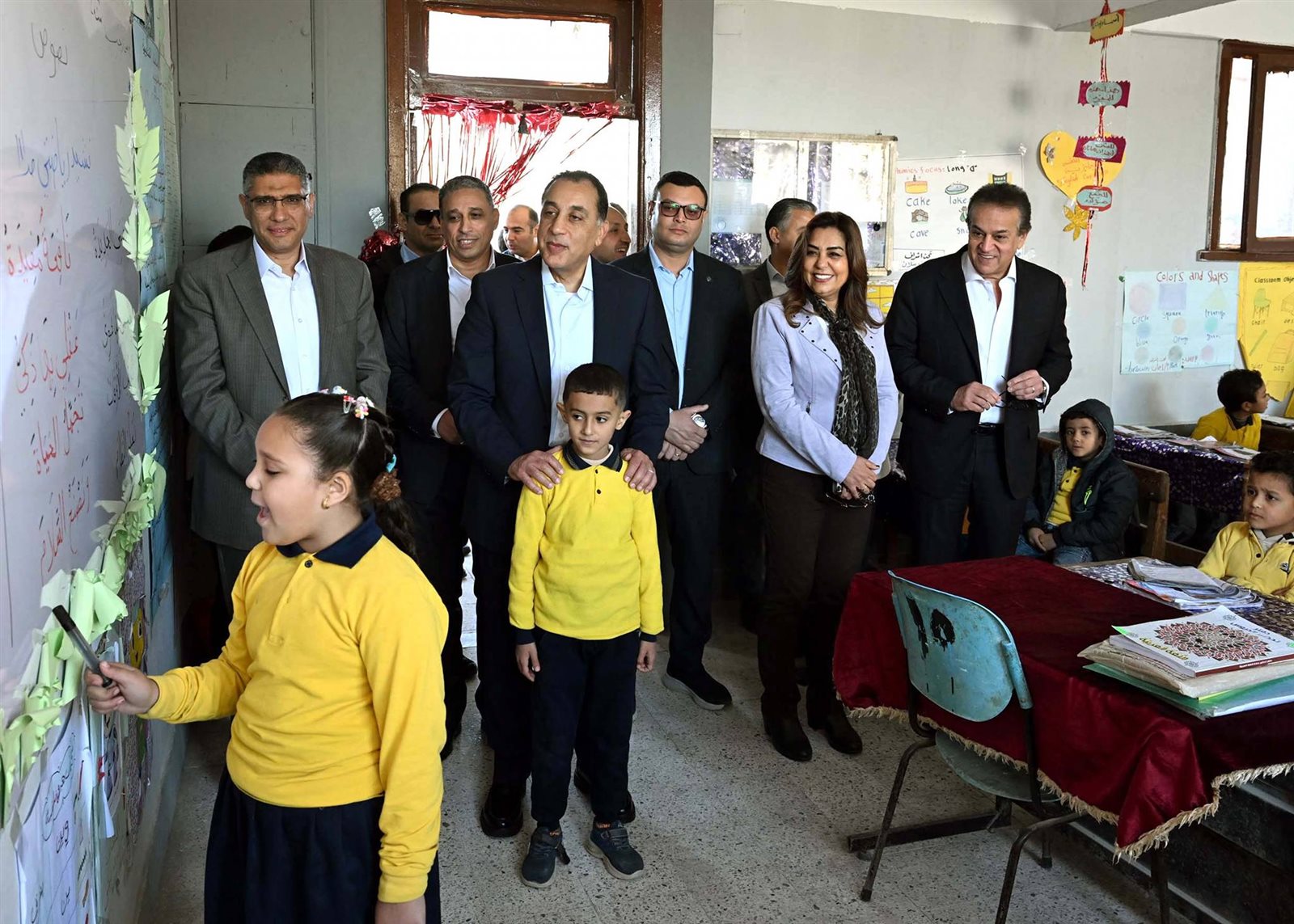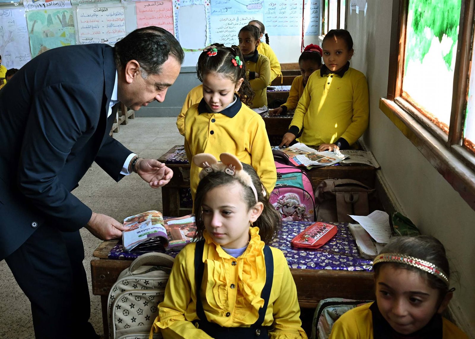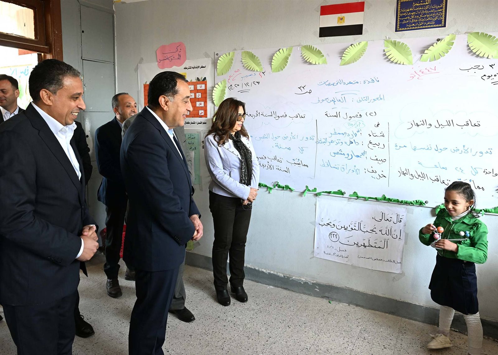 وحرص الدكتور مصطفى مدبولي على حضور إحدى الحصص الدراسية للصف الأول الابتدائي، حيث أعرب للطلاب عن سعادته للاستماع إلى الشرح الملقى عليهم حول فصول السنة، من إحدى الطالبات، وفي غضون ذلك استفسر من مدرسة الفصل حول نسب الحضور والغياب، ومدى استيعاب الطلاب للمقررات الدراسية، كما طلب من إحدى الطالبات قراءة نص من كتاب اللغة العربية، حيث أشاد بها رئيس الوزراء وبنطقها السليم لحروف اللغة، وتمنى لها التوفيق.