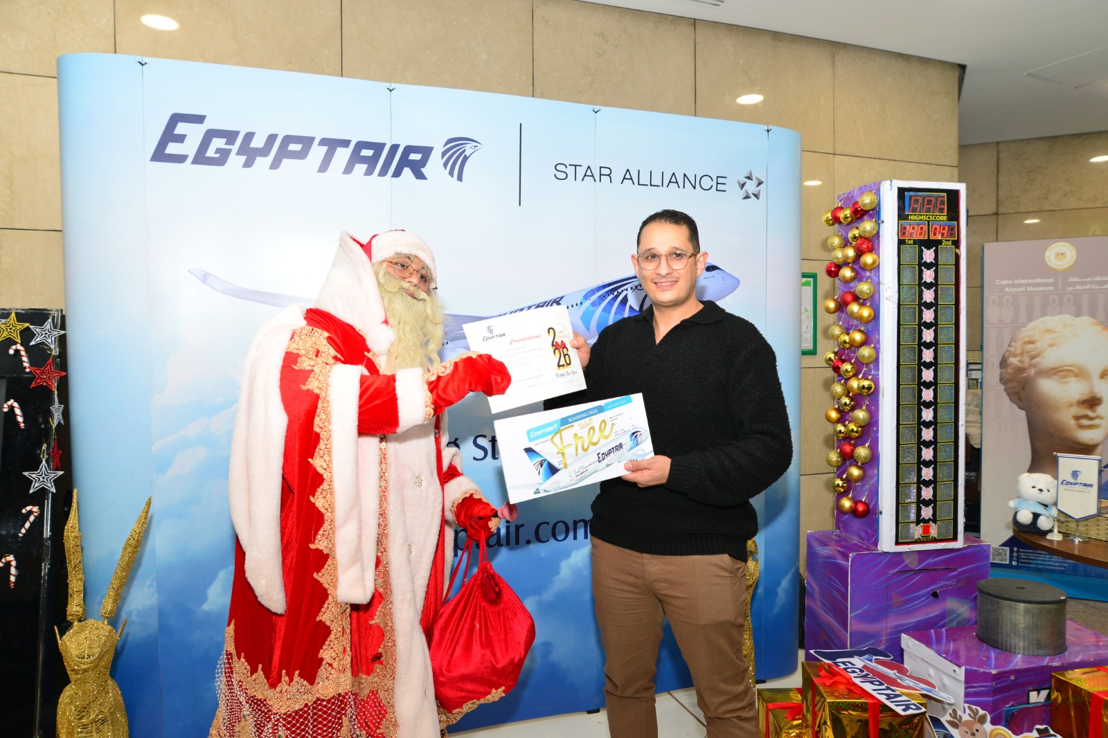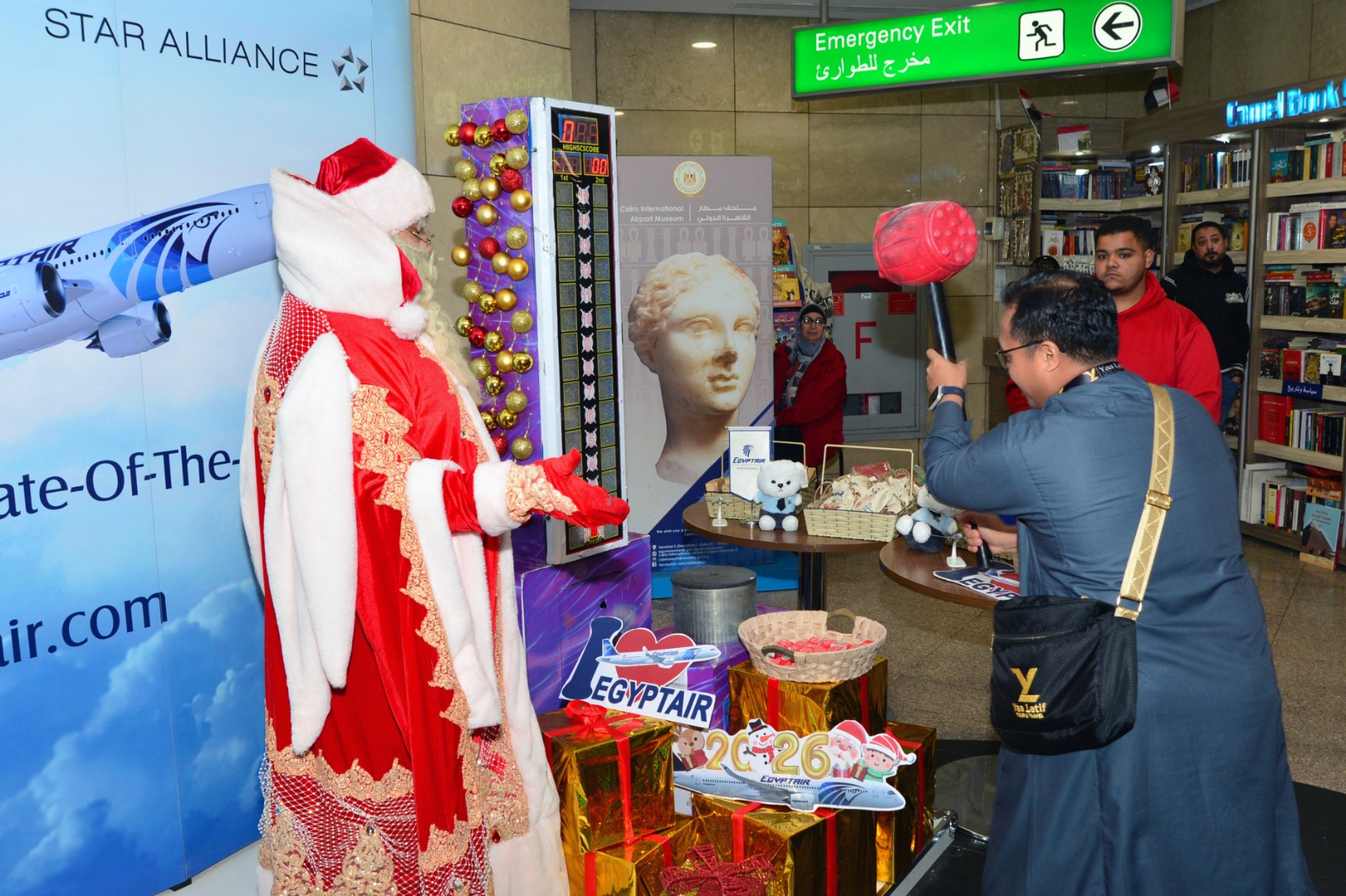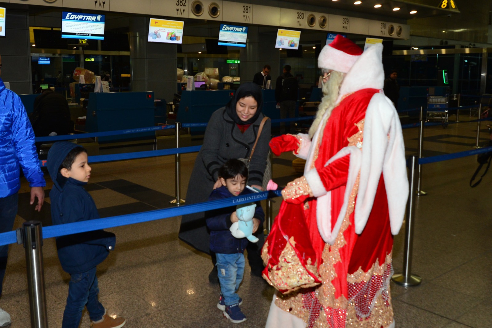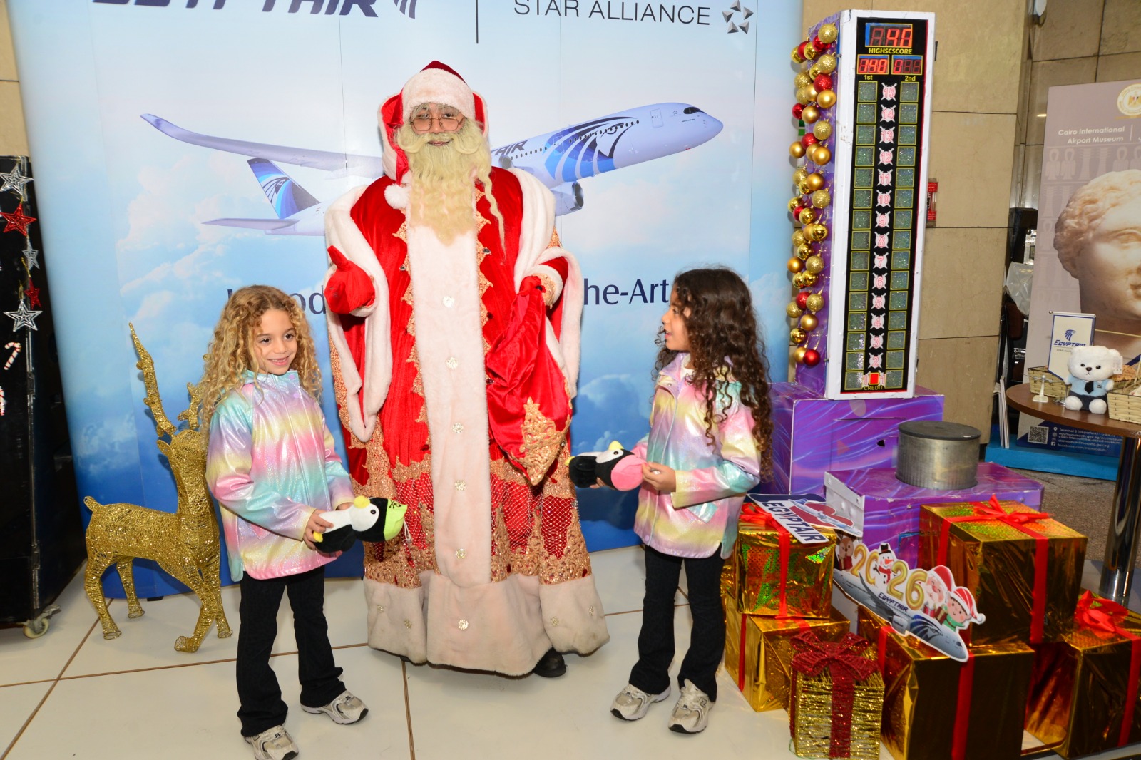 ومن مظاهر الاحتفال بالعام الجديد قدمت مصر للطيران بهذة المناسبة مزايا مجانية للمسافرين على رحلاتها خلال اليوم شملت تذاكر سفر مجانية وتخفيضات وأميال مجانية لأعضاء برنامج المسافر الدائم، فضلًا عن قيام "سانتا كلوز" بتوديع المسافرين قبل إقلاع الرحلات وتقديم الهدايا التذكارية لهم وإلتقاط الصور معهم بمطار القاهرة والتي تزينت بمظاهر الكريسماس وألوانه بهدف الترويج للرحلات ورسم البسمة وإدخال البهجة علي المسافرين، كما قامت شركة مصرللطيران للأسواق الحرة بتقديم هدايا تذكارية للمسافرين بالمطار وحرصت على التقاط الصور التذكارية مع المسافرين.