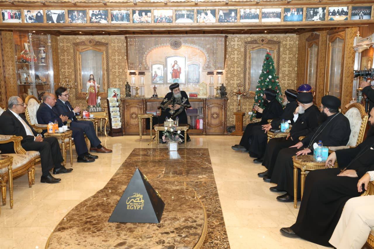 استقبل قداسة البابا تواضروس الثاني، بابا الإسكندرية وبطريرك الكرازة المرقسية، اليوم الأحد، بالمقر البابوي بالكاتدرائية المرقسية بالعباسية، الدكتور أحمد فؤاد هنو وزير الثقافة، الذي قدّم لقداسته التهنئة بمناسبة عيد الميلاد المجيد، حيث جسّد اللقاء عمق الروابط الوطنية، وبحث سُبل تعزيز التعاون الثقافي المشترك بين الوزارة والكنيسة المصرية، وذلك بحضور الأستاذ سامي عيّاد مستشار وزير الثقافة للهوية البصرية، والأستاذ أمير نبيه مستشار وزير الثقافة للتنمية المجتمعية.