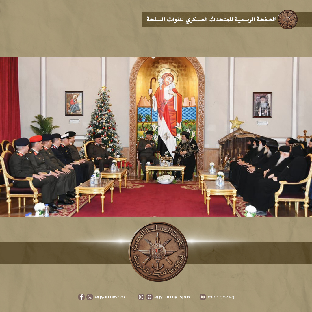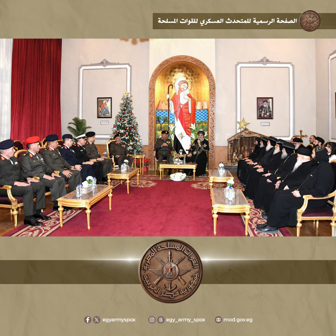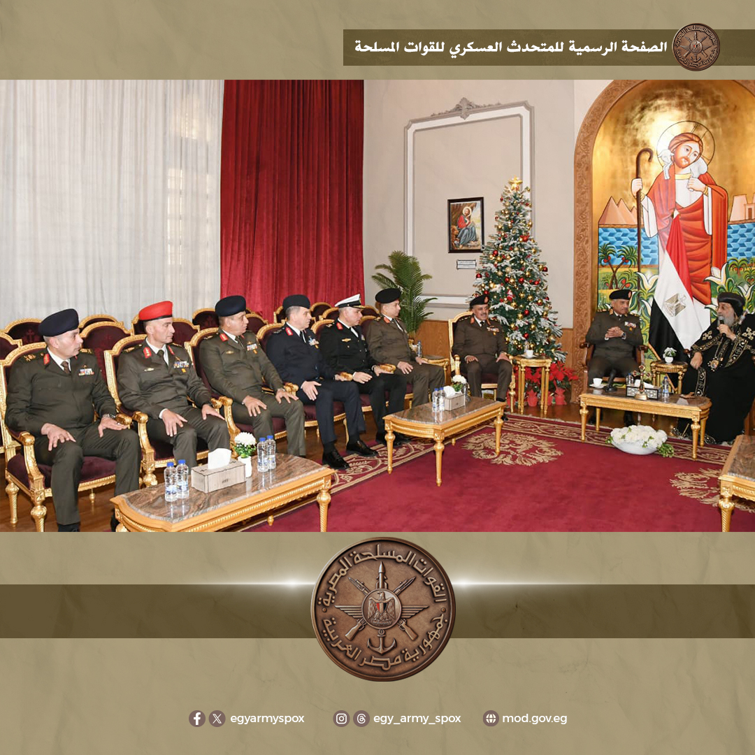 من جانبه، أعرب البابا تواضروس الثاني عن إعتزازه وتقديره لرجال القوات المسلحة الذين يمثلون صمام الأمان بما يقدمونه من جهود وتضحيات لحماية مقدرات شعب مصر العظيم، مؤكداً أن هذه الزيارة تعكس المعنى الحقيقى للتلاحم الوطنى وتؤكد أننا نعيش فى وطن لا يفرق بين أبنائه بل يجمعهم تحت مظلة واحدة من الحب والعمل لرفعة وطننا الغالى.