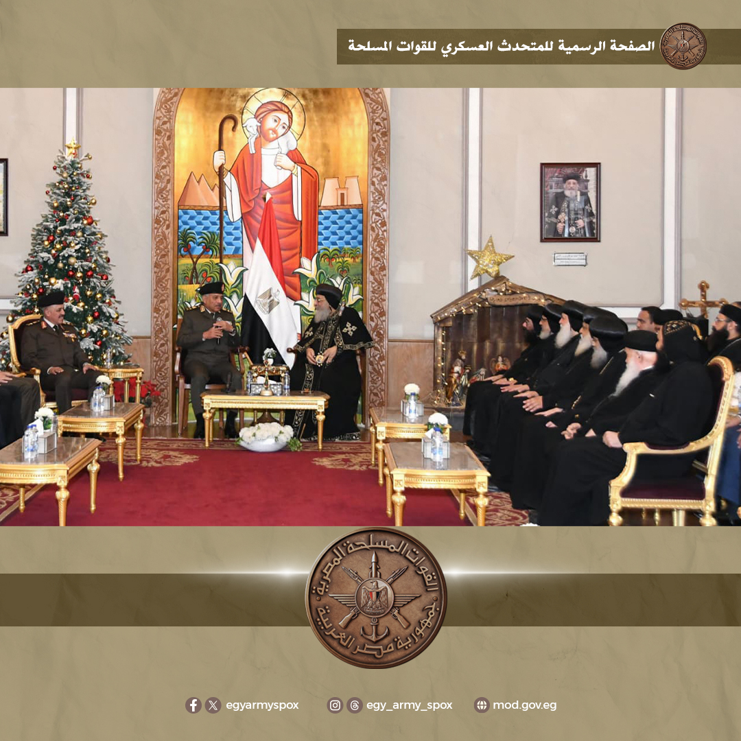 وزير الدفاع يهنئ البابا تواضروس بمناسبة عيد الميلاد ويؤكد: وحدة نسيجنا الوطني الداعم لبناء أمتنا العظيمة