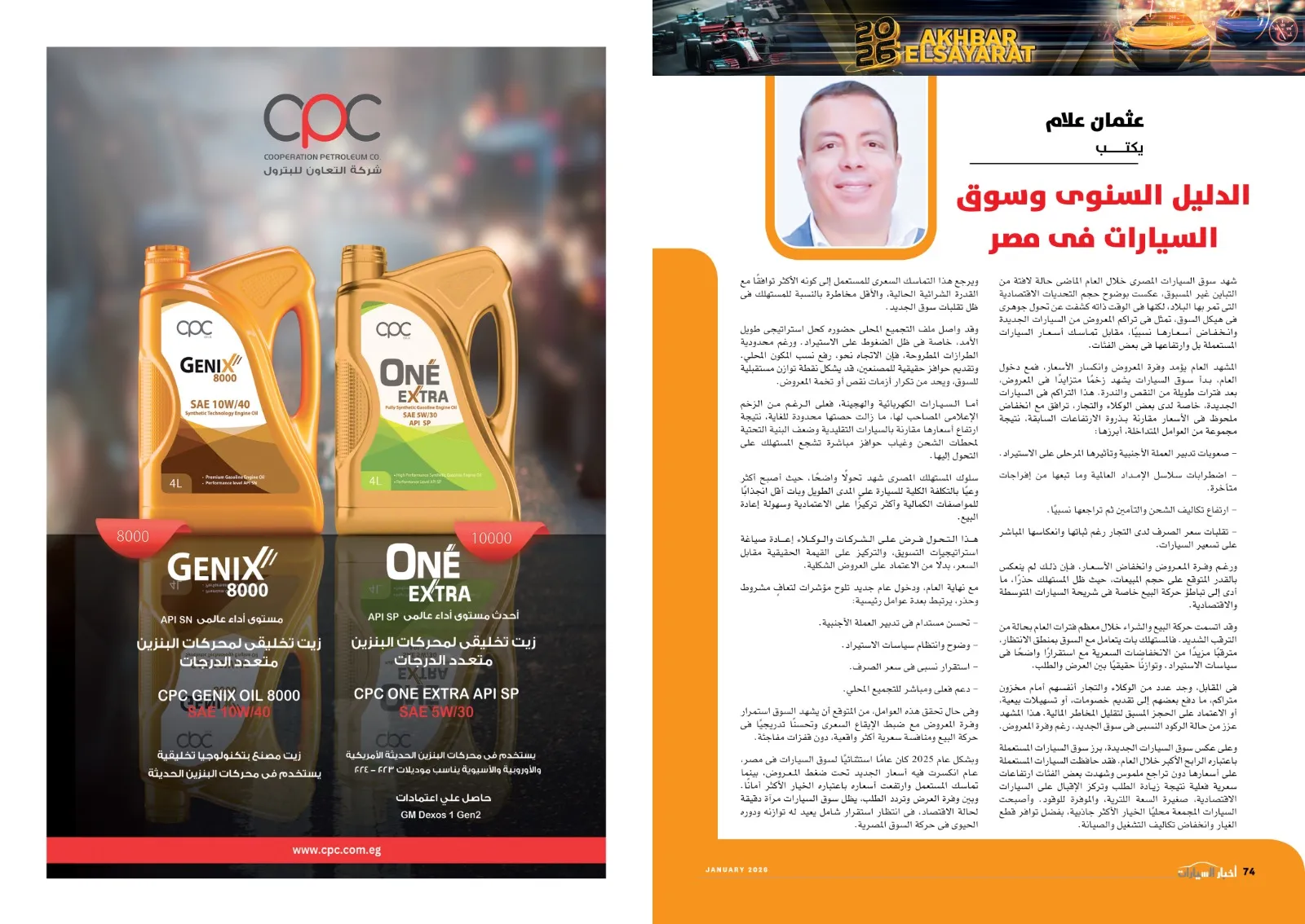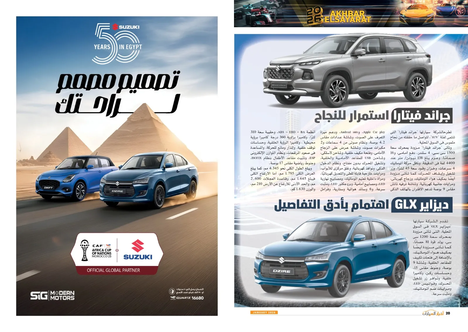وجاء في العدد أيضًا تقارير عن سوزوكى راعى كأس أمم أفريقيا توتال إنيرجيز المغرب 2025، Gen.Urban من فولكس واجن قادمة بقوة لعالم المنافسة، LBX Morizo RR من لكزس.. أناقة بطابع مختلف، مرسيدس S-Class انطلاقة فى عالم السيارات ذاتية القيادة، كيا تيليورايد 2027.. جرأة تخطف الأنظار، 2026 عامة المنافسة والتصنيع، نصر جديد، مصر تتخذ إجراءات مهمة لتعزيز التصنيع المحلى وتقليل الاعتماد على الاستيراد.