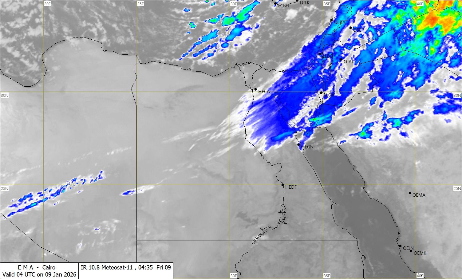 أعلنت الهيئة العامة للأرصاد الجوية، أنه في ظل استمرار متابعة الحالة الجوية، تشير أحدث صور الأقمار الصناعية إلى تدفّق السحب الممطرة باتجاه السواحل الشمالية، يصاحبها سقوط أمطار متفاوتة الشدة.