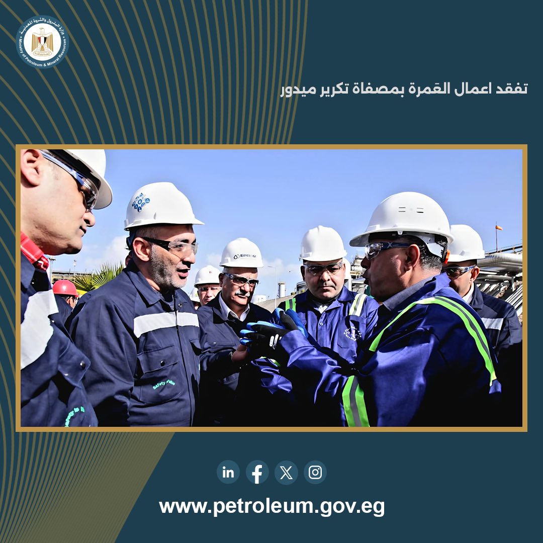 متابعة ميدانية لأعمال زيادة إنتاج مصفاتي الإسكندرية وميدور للبترول